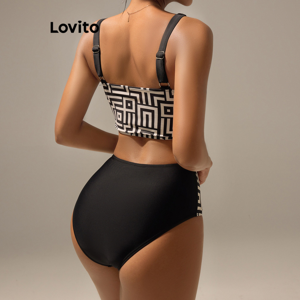 Lovito Biquíni Boho com Costuras Geométricas em Tecido Colorido para Mulheres LBL17663