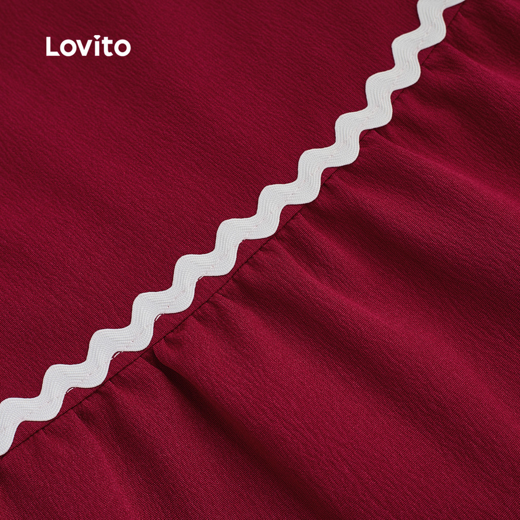 (NEW) Lovito Vestido Elegante com Trança Babado Primavera/verão Vestido Vermelho para mulheres LBL29338