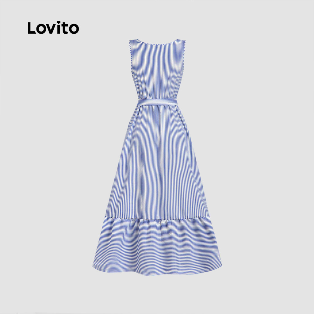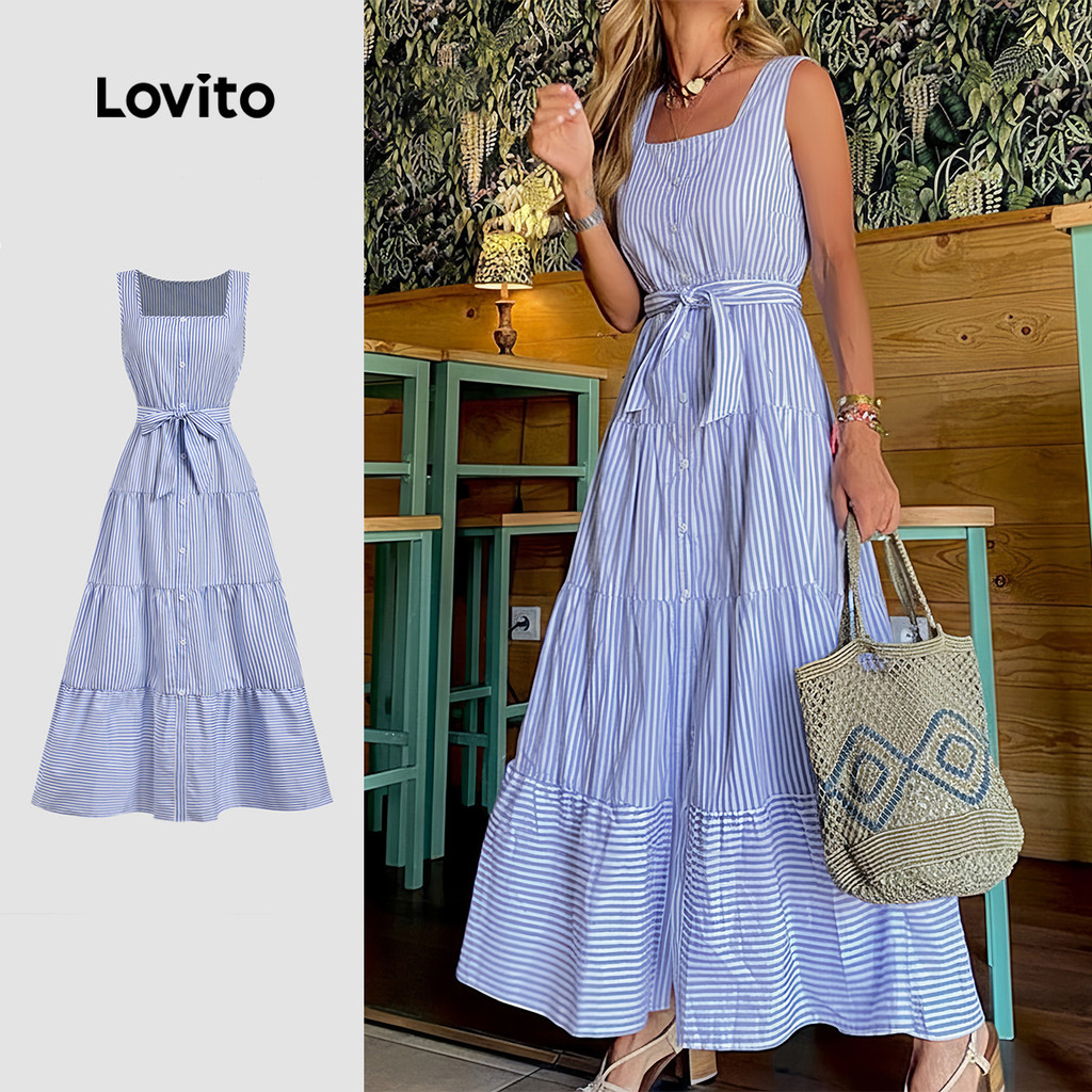 Lovito Vestido Casual Feminino com Cinto e Estampa para a Primavera e O verão LBL34016