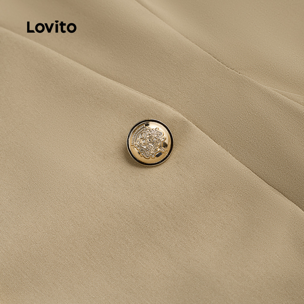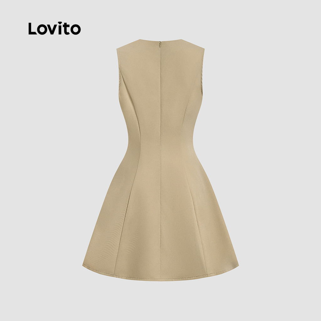 Lovito Vestido Cáqui Elegante Plissado Liso Verão Primavera Para Mulheres L132ED093