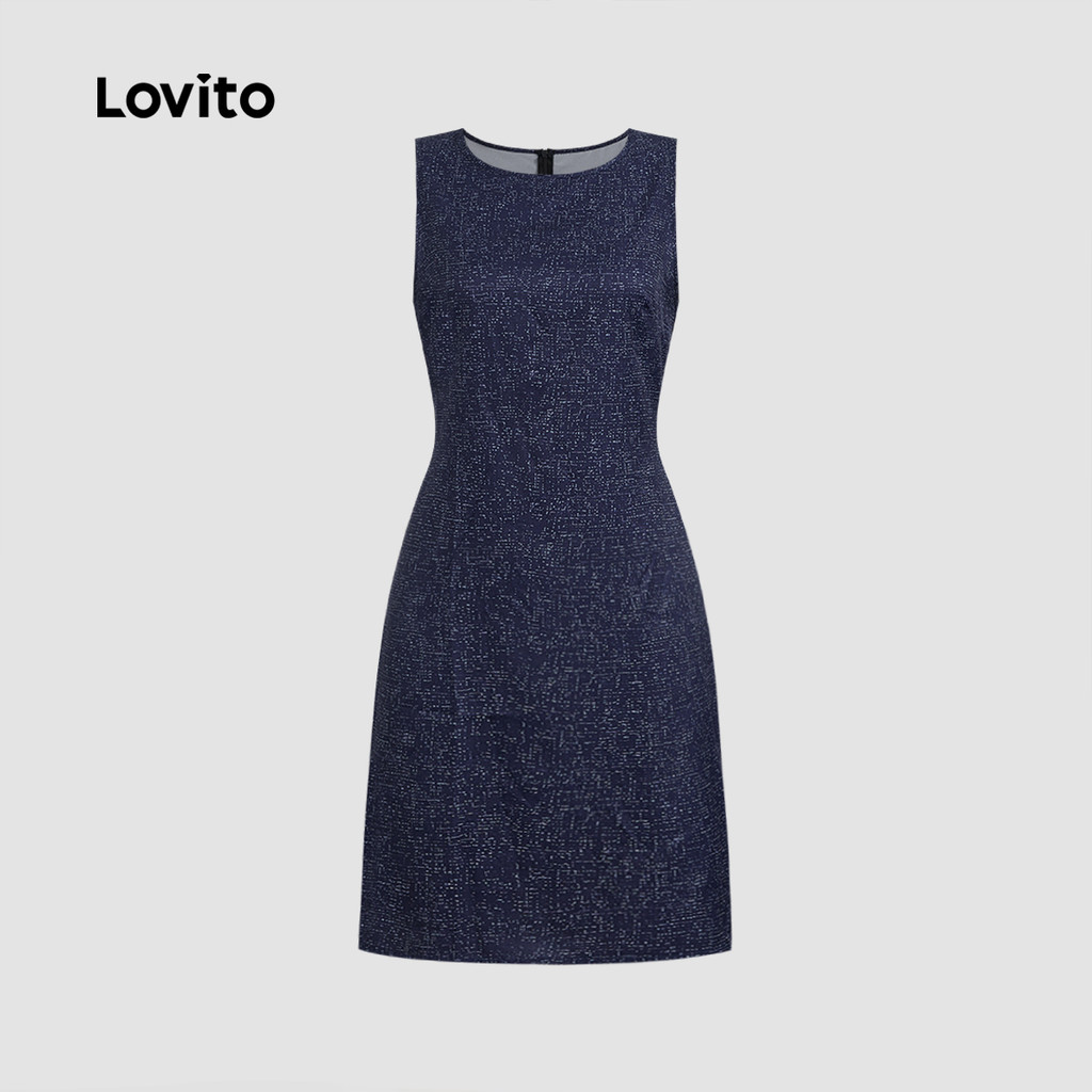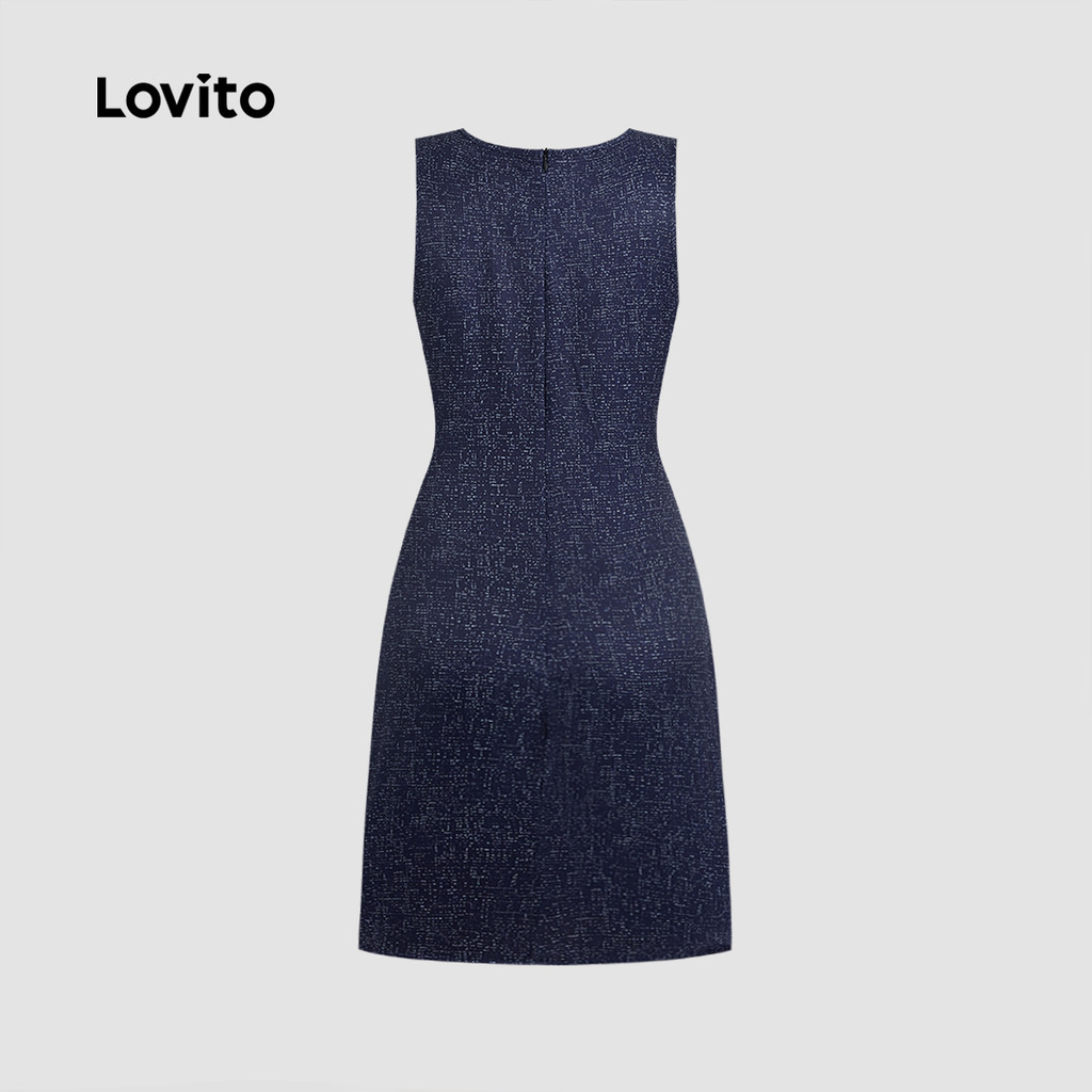 Lovito Vestido Elegante De Férias Com Zíper Azul Escuro Para Mulheres Ideal Para Primavera/verão L137LD428