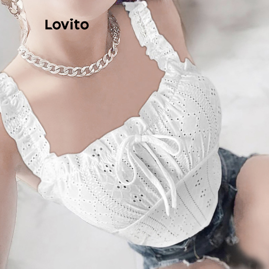 (Trendy) Lovito Regata Boho Em Jacquard Liso Com Cadarço Para Mulheres L99ED631