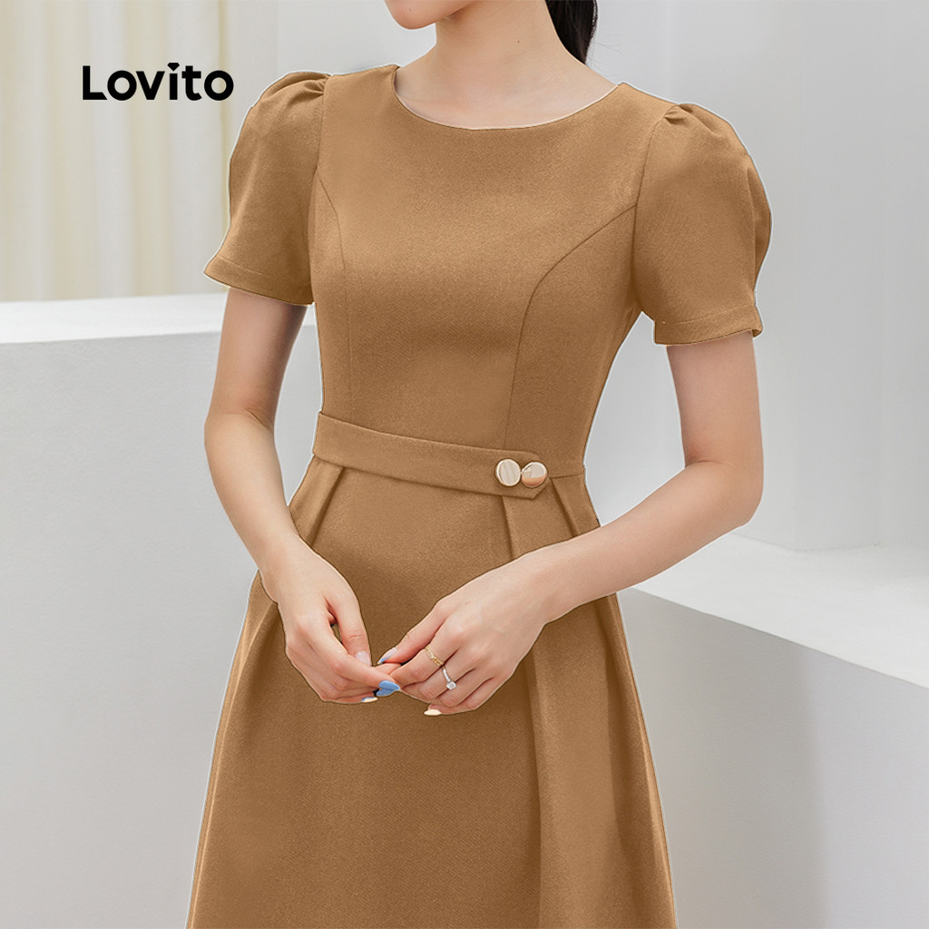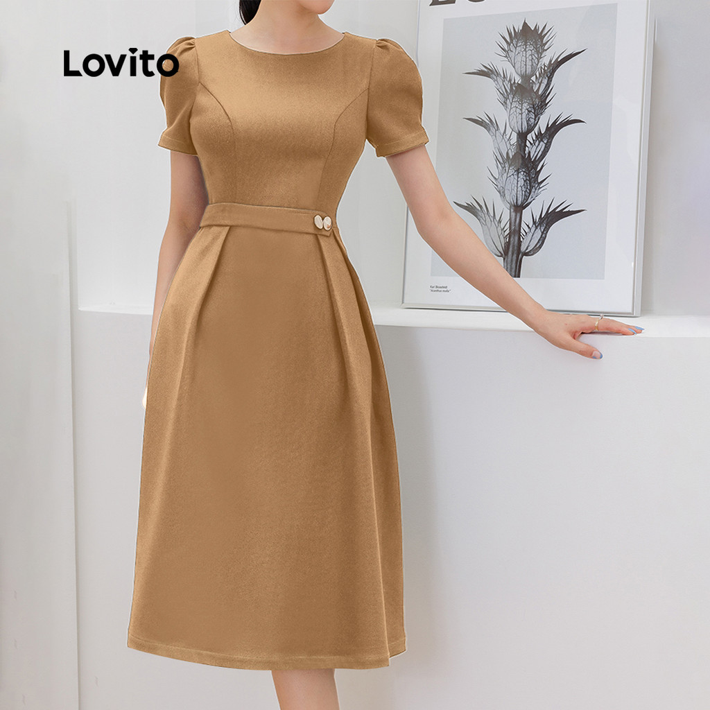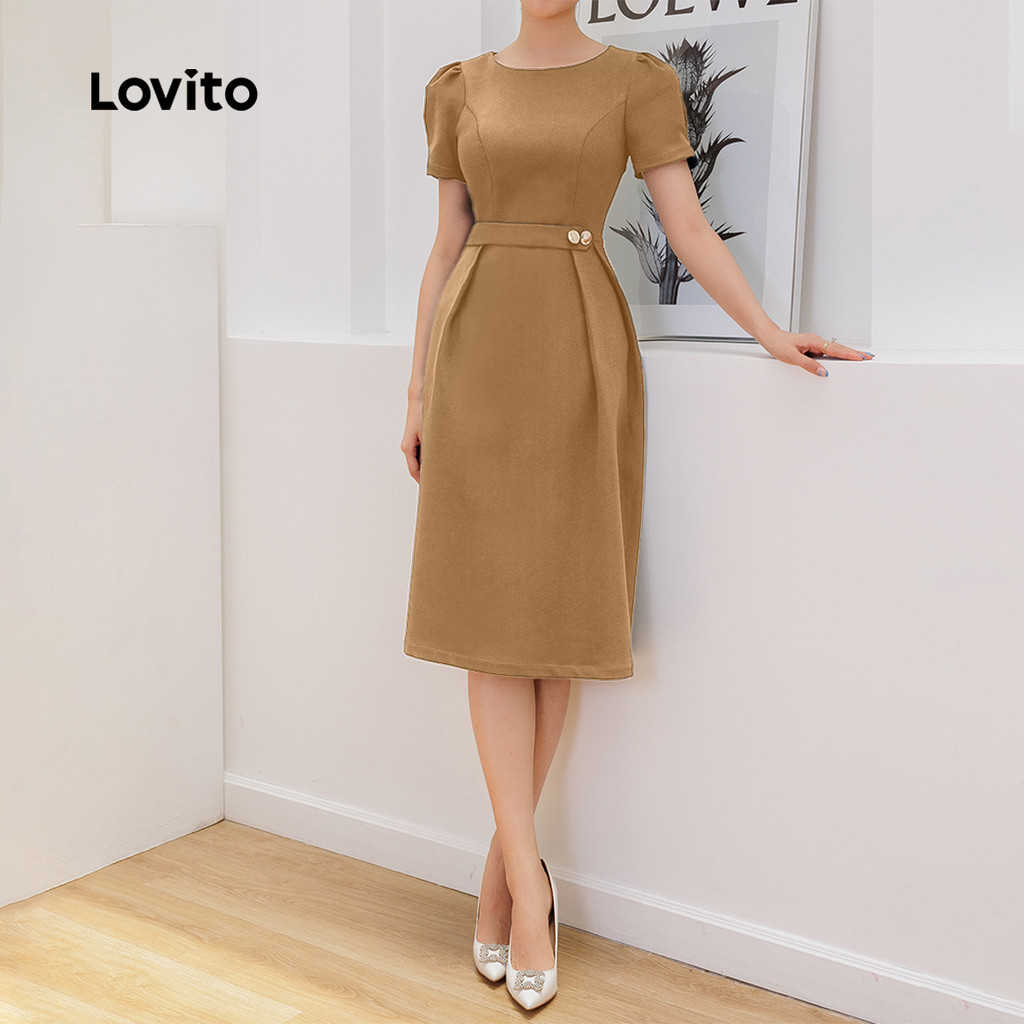 (New) Lovito Vestido Elegante com Pregas Estrutura com Zíper Primavera/verão Vestido azul marinho L143ED309