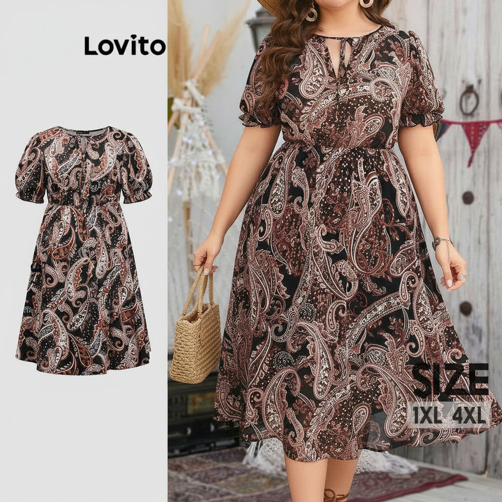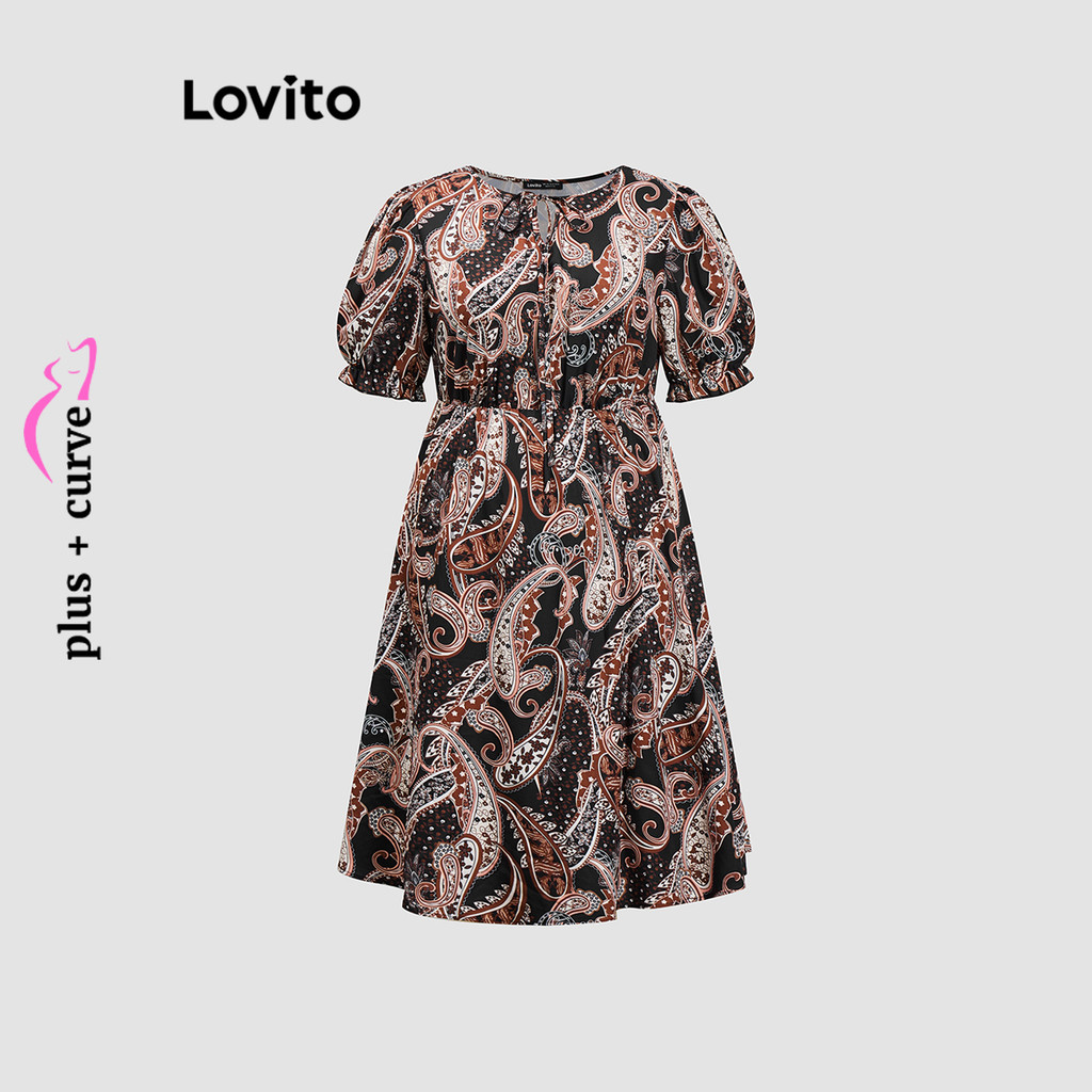 Lovito Vestido Feminino Curva Plus Size Estampado Tribal Casual LBL18321