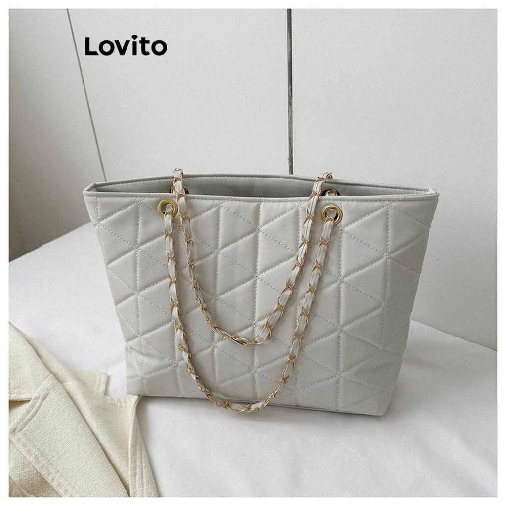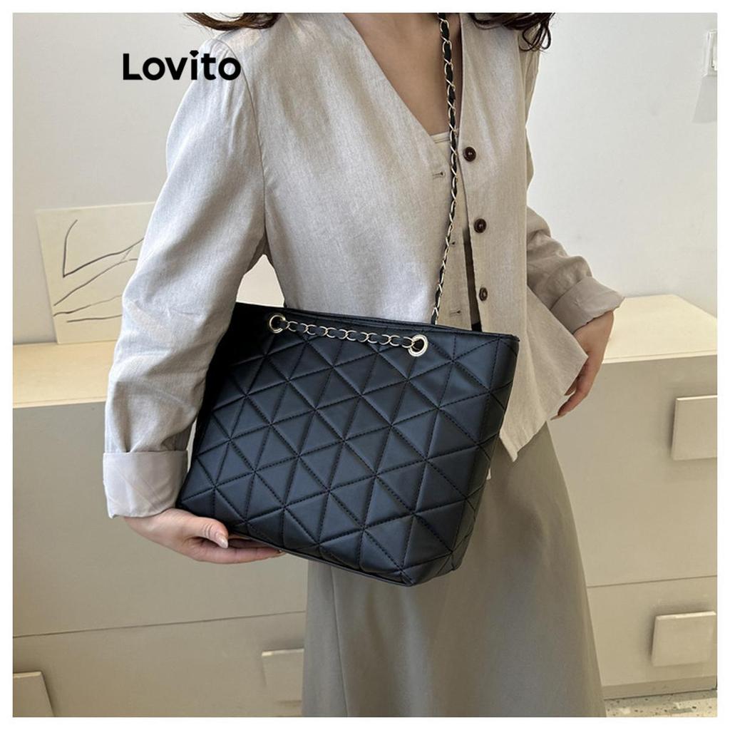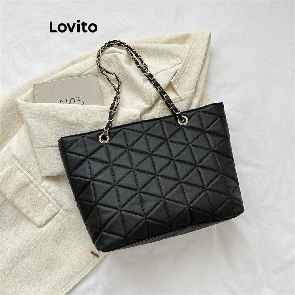 Lovito Casual Argyle Chain Acolchoado Zíper Sacola de Ombro de Grande Capacidade Bolsa para Mulheres LFA74026