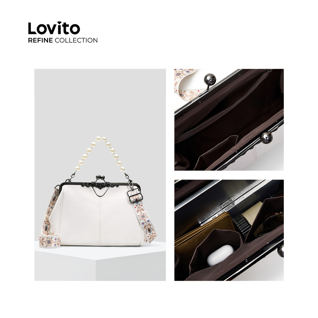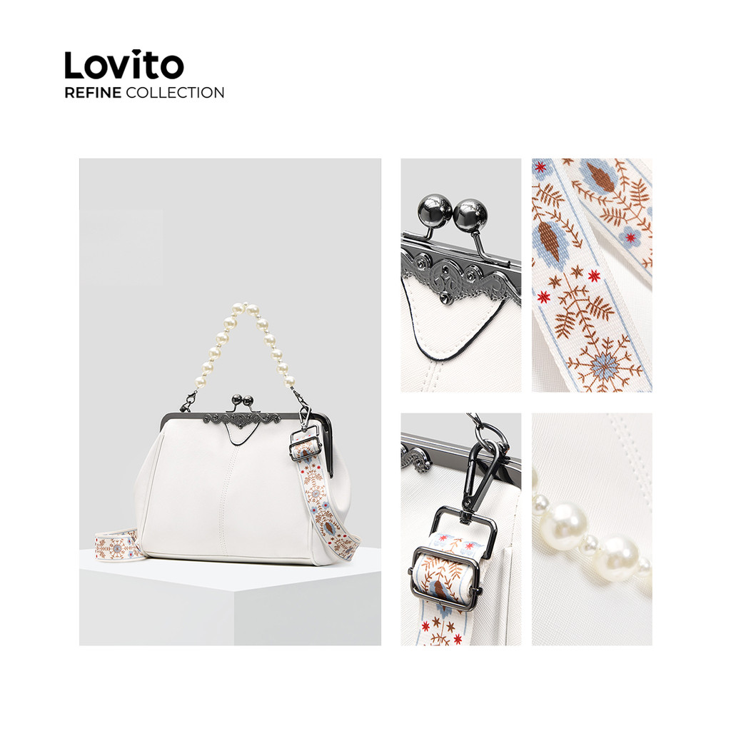 (Lovito Refine) Elegante Pequena Bolsa De Ombro Moda Clipe Pérolas Bolsa Pequena Bolsa De Ombro Para Mulheres LFR13127