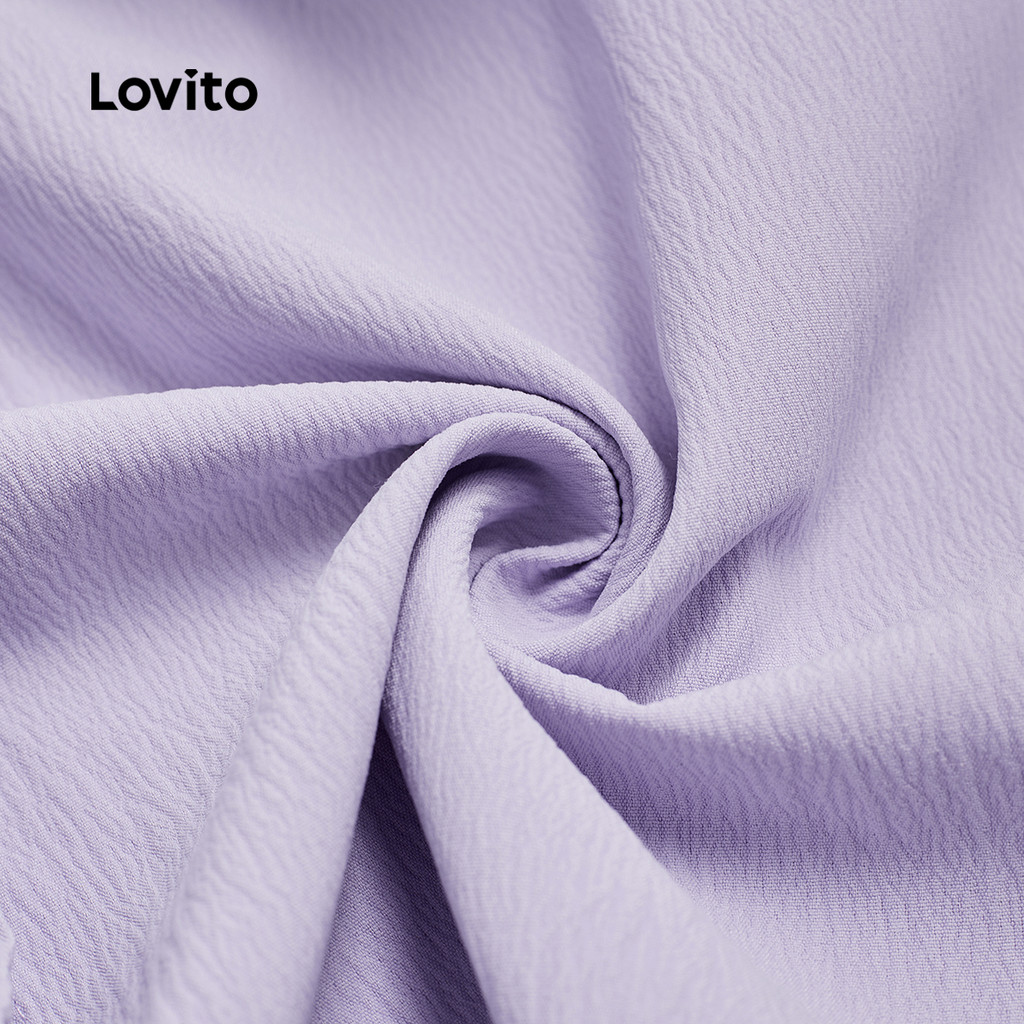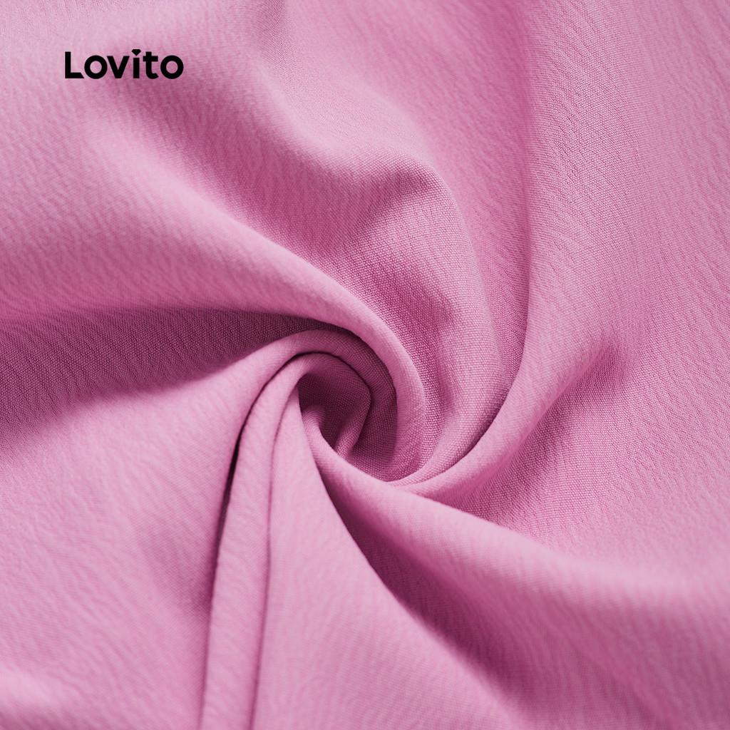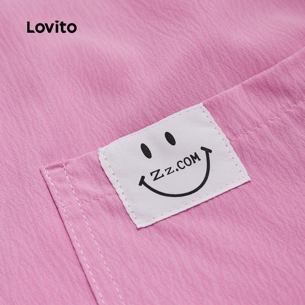 (Trendy) Lovito Blusa Casual Com Botão Liso E Bolso Frontal Para Mulheres Lna29005 (Branco/Rosa/Azul)