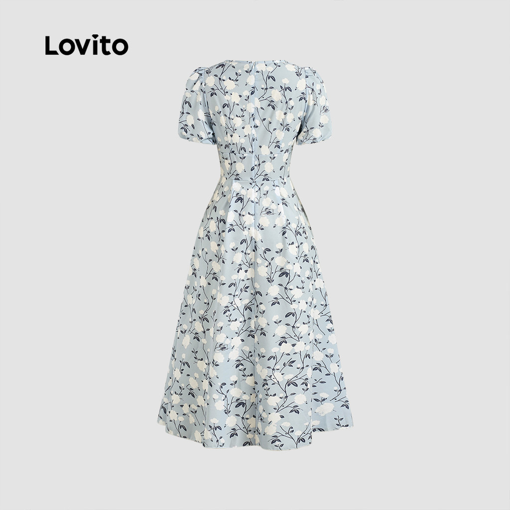 Lovito Vestido Elegante de Renda com Cadarço para a Primavera/verão Vestido Azul para mulheres LBL27378