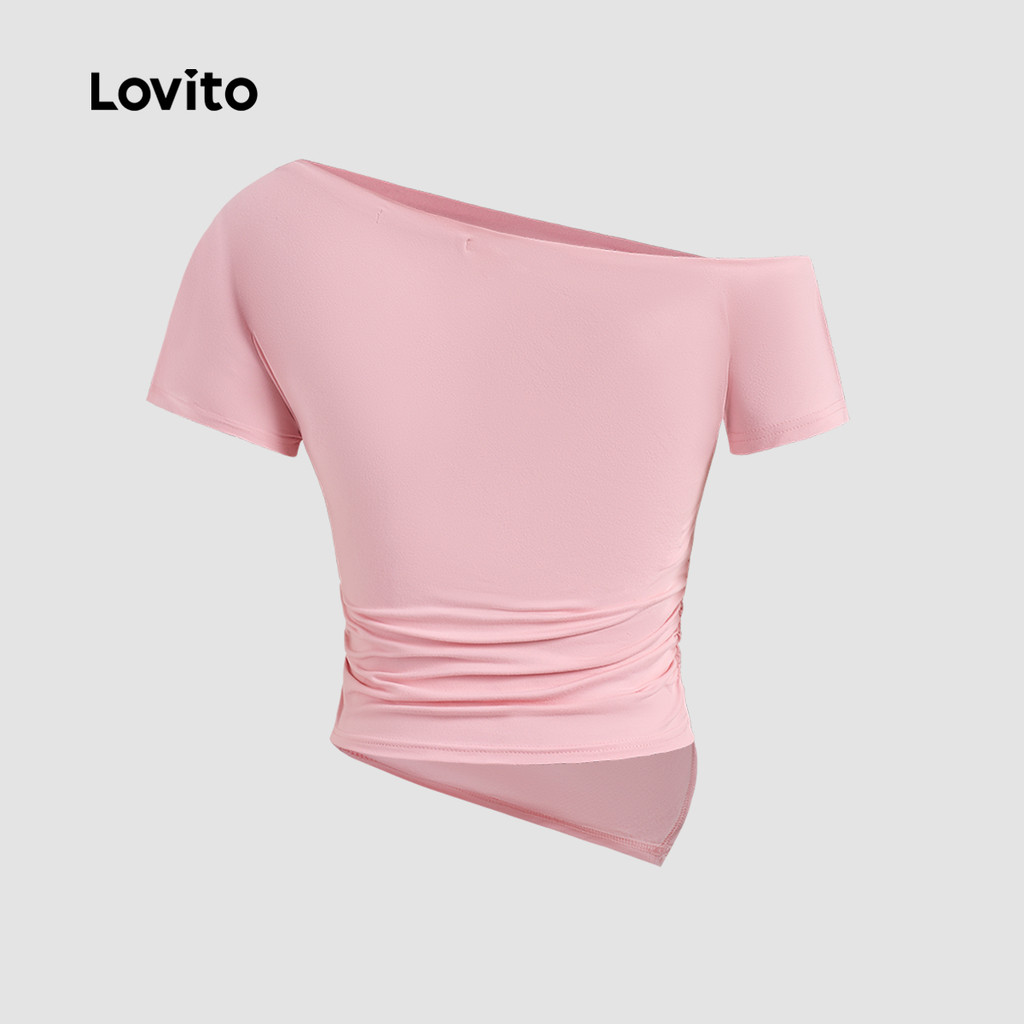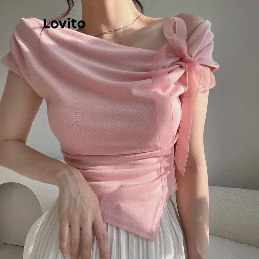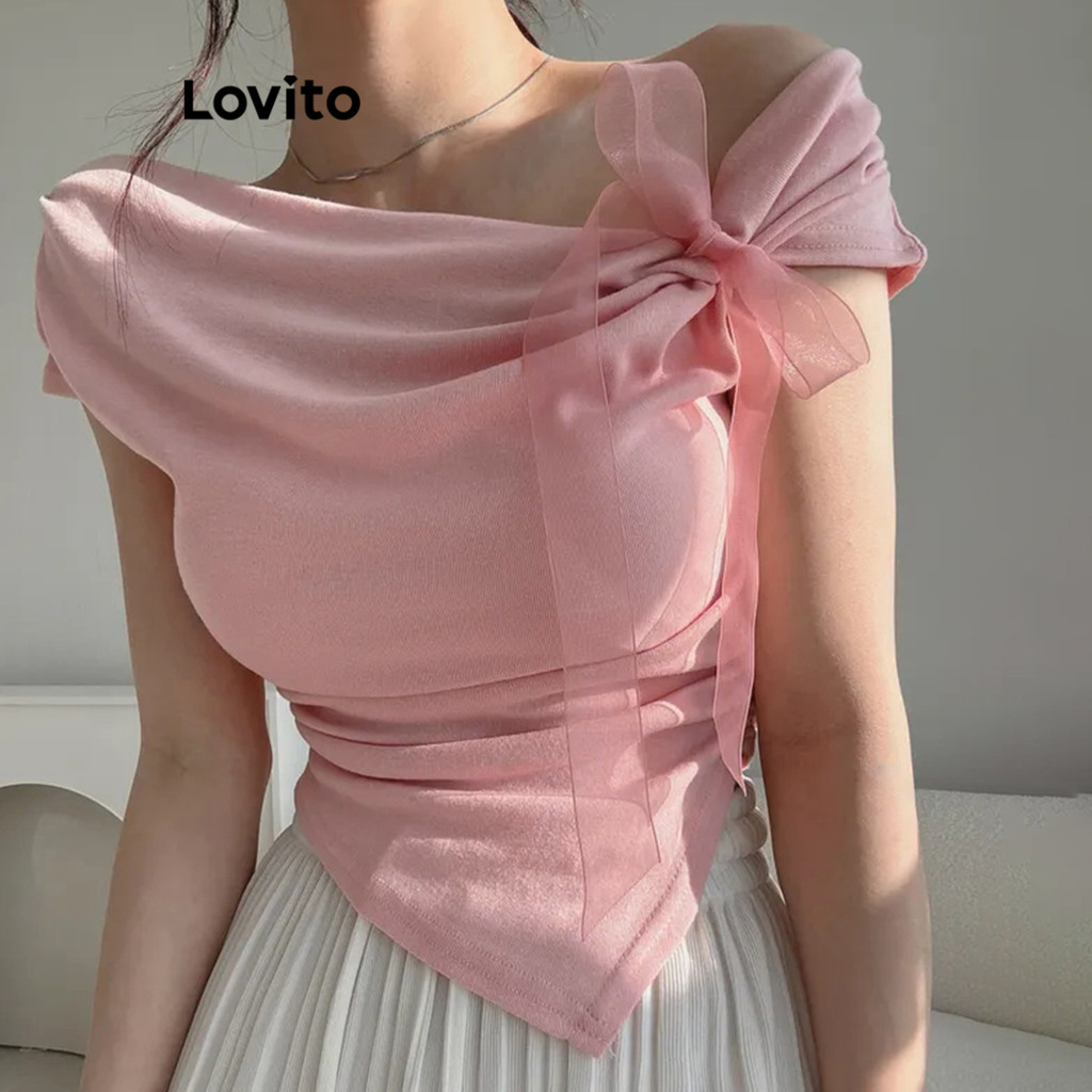 (Trendy) Lovito Camiseta Fofa Lisa Assimétrica Com Gravata Frontal Para Mulheres L122AD121