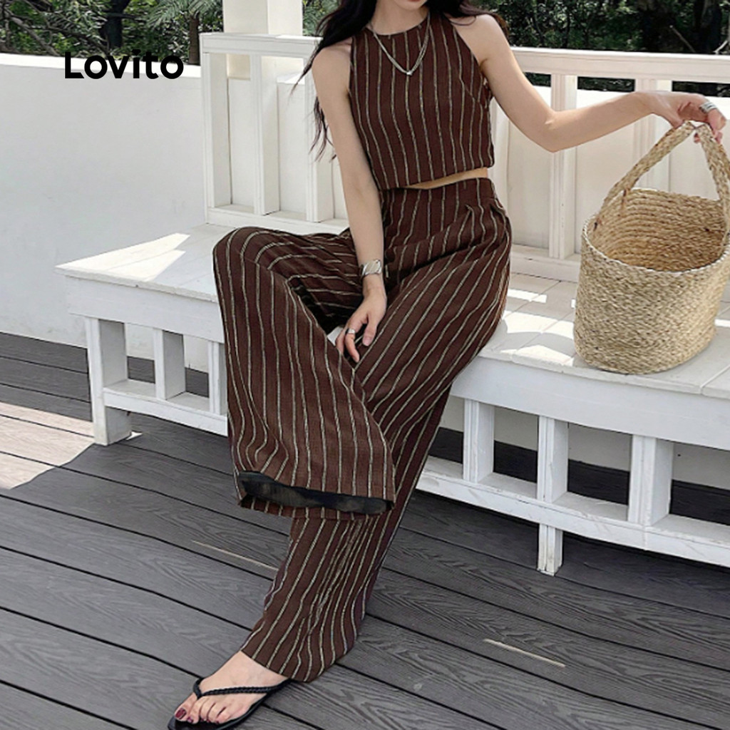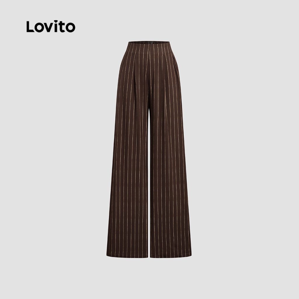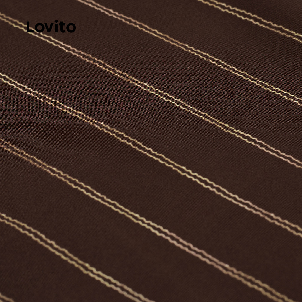 (New) Lovito Conjuntos de Calças Casuais Geométricas Primavera/verão Calças Marrons para mulheres L142ED074