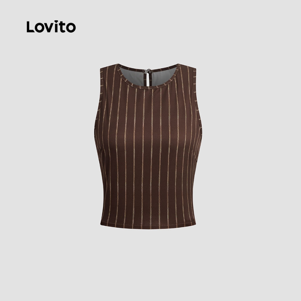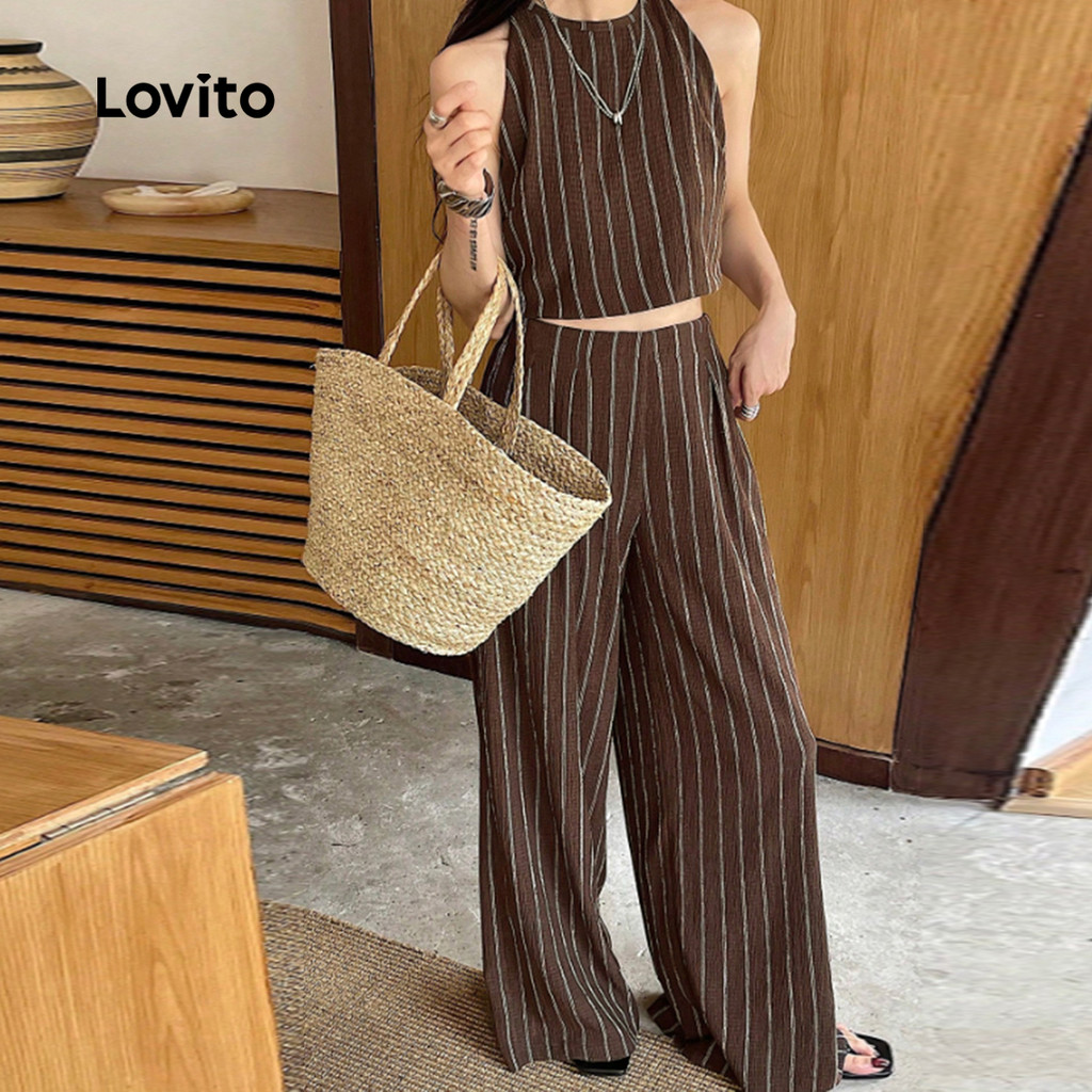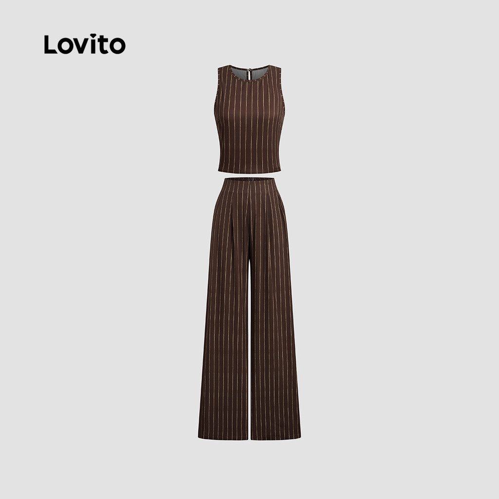 (New) Lovito Conjuntos de Calças Casuais Geométricas Primavera/verão Calças Marrons para mulheres L142ED074