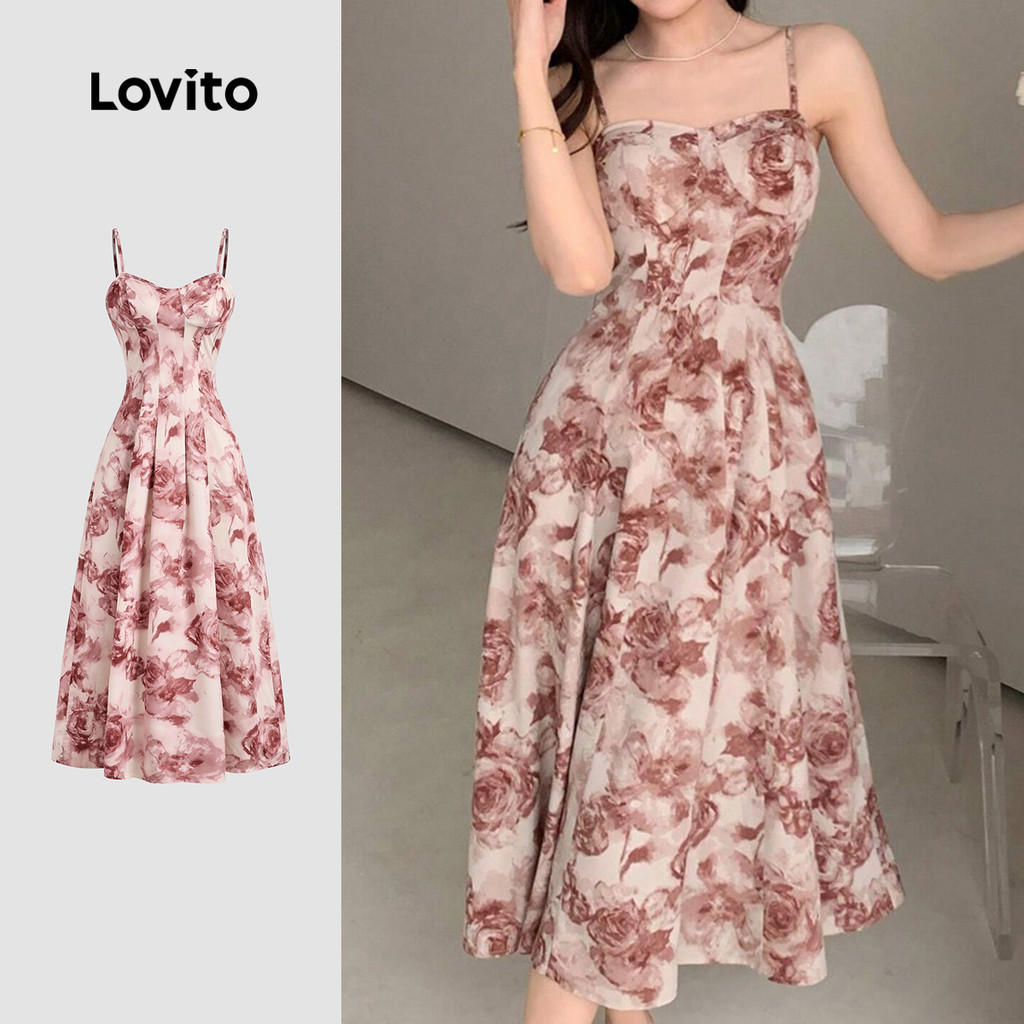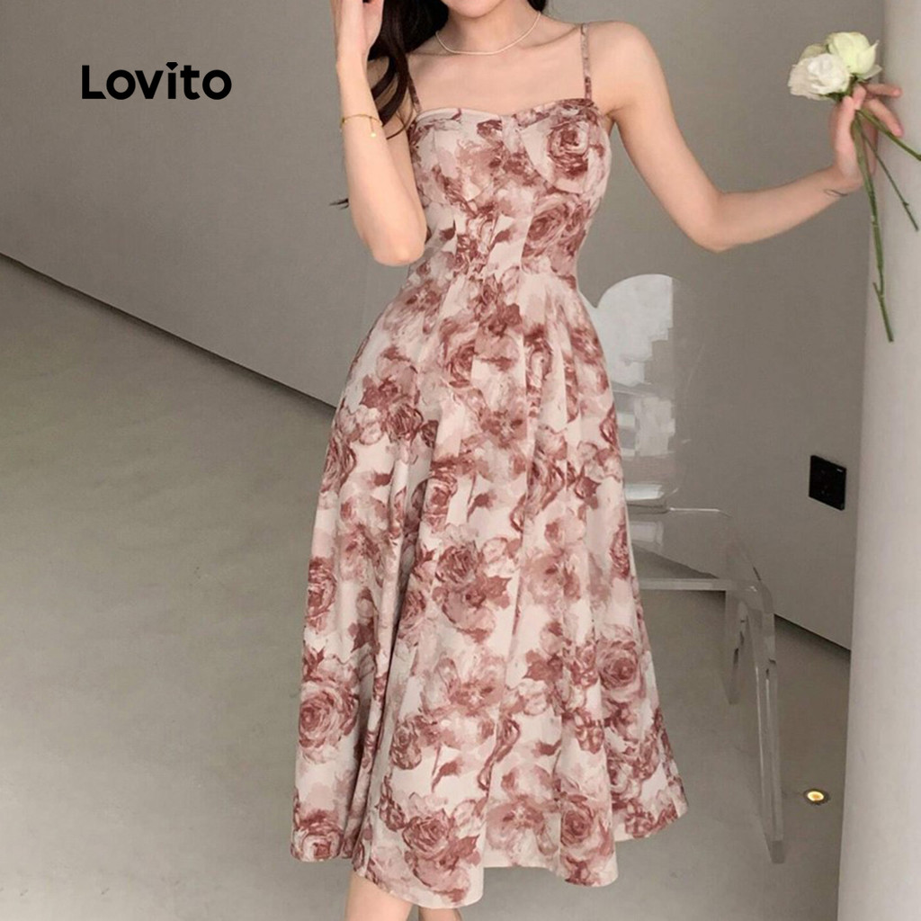 (New) Lovito Vestido de Primavera/verão para Mulher com Alças Ajustáveis e Estrutura de Roupa casual L142ED398