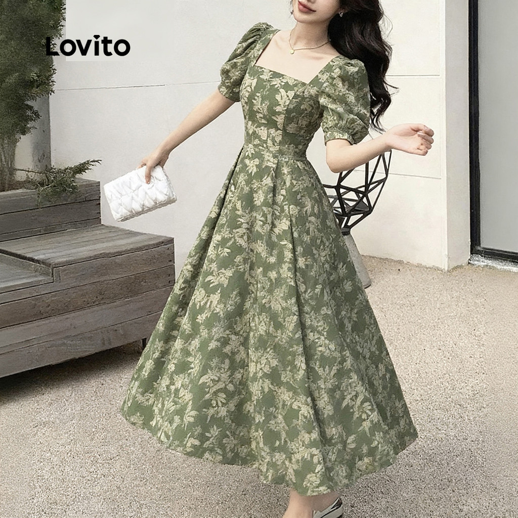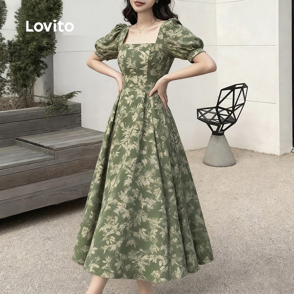 Lovito Vestido Casual com Zíper para Primavera/verão Verde para Mulheres L161LD013