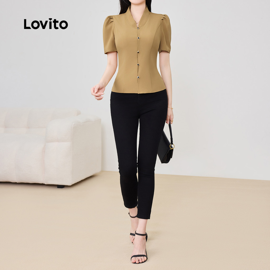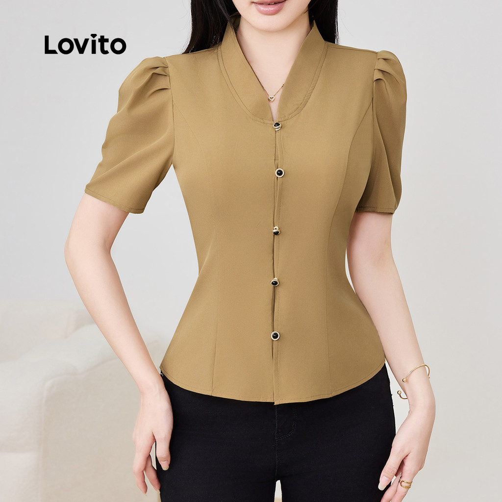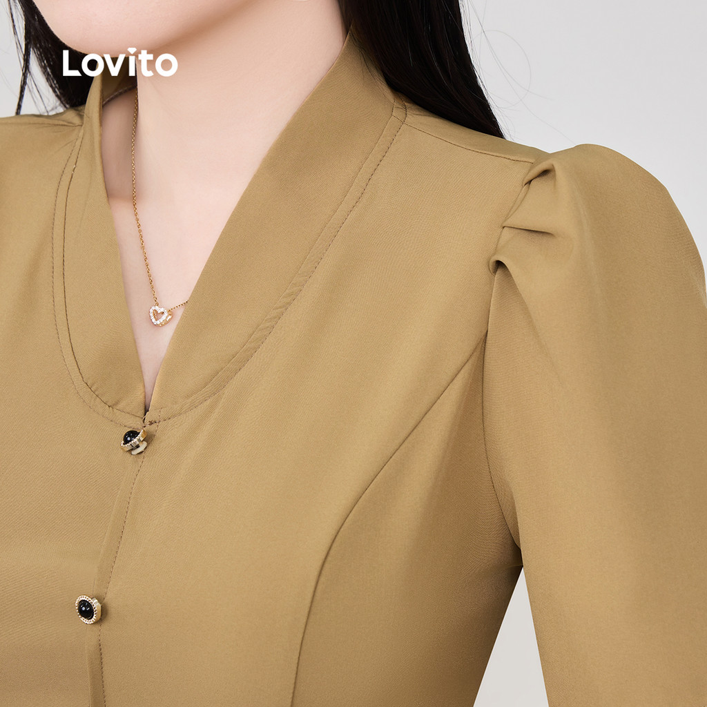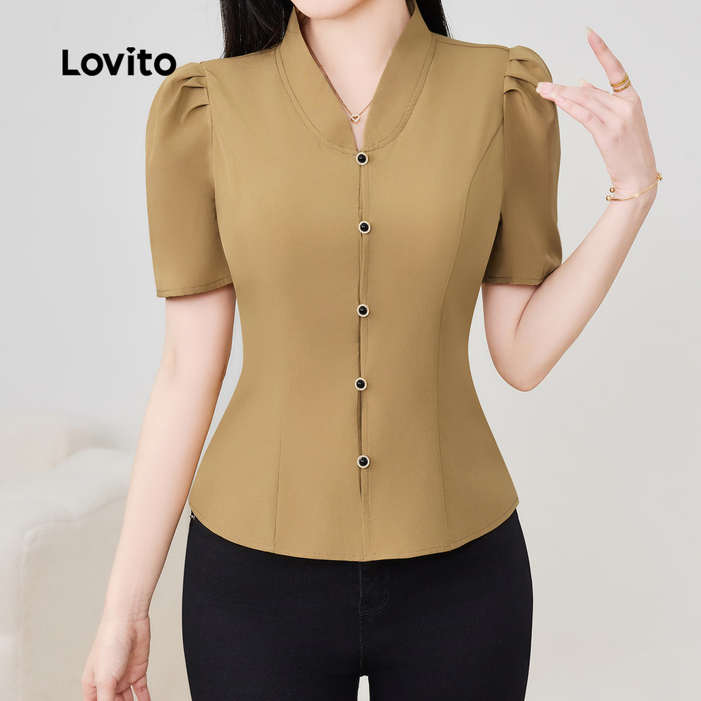 Lovito Blusa Elegante Plissada Primavera/verão Blusa Cáqui para Mulheres L164LD293