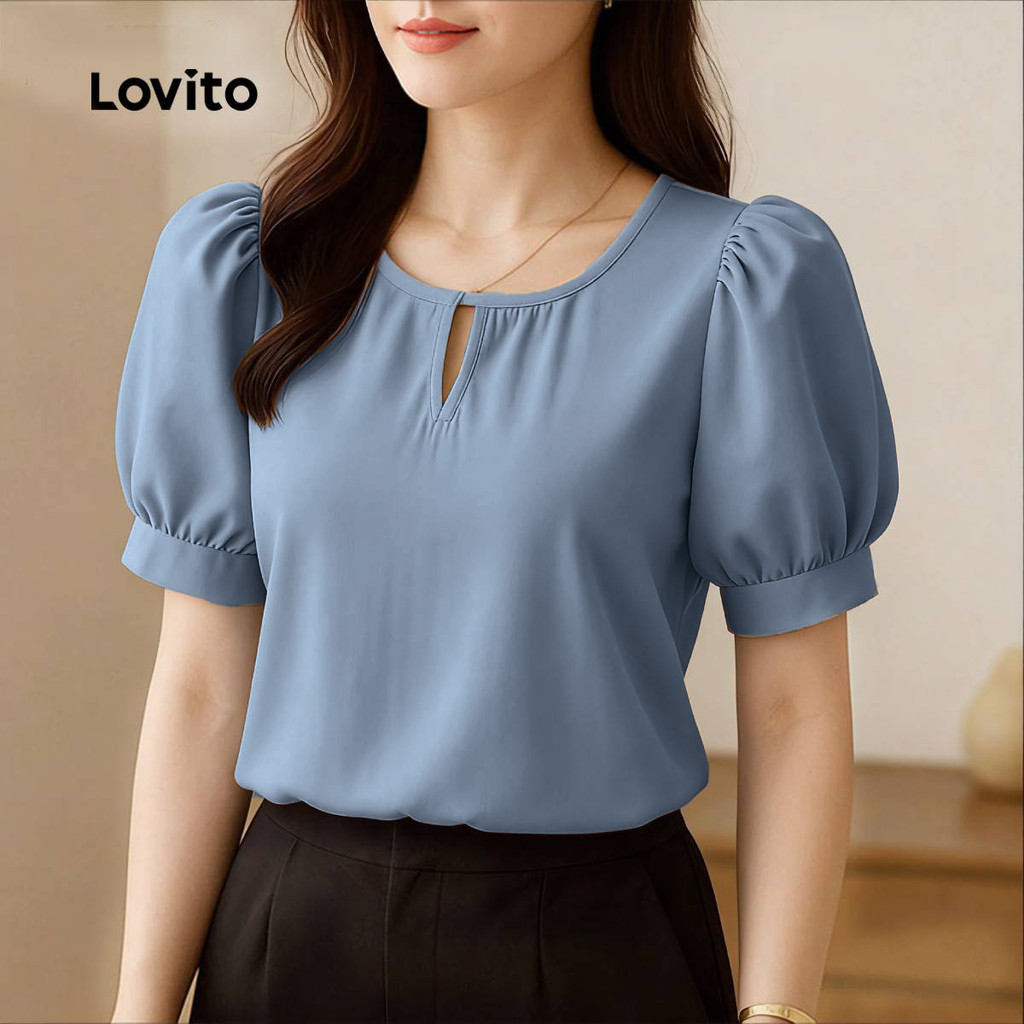 Lovito Blusa Casual Plissada com Recorte Primavera/verão Blusa Khaki para Mulheres L171ED1043