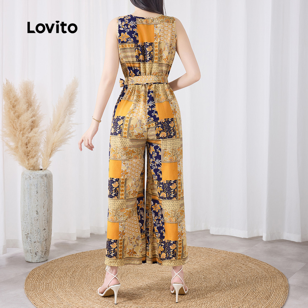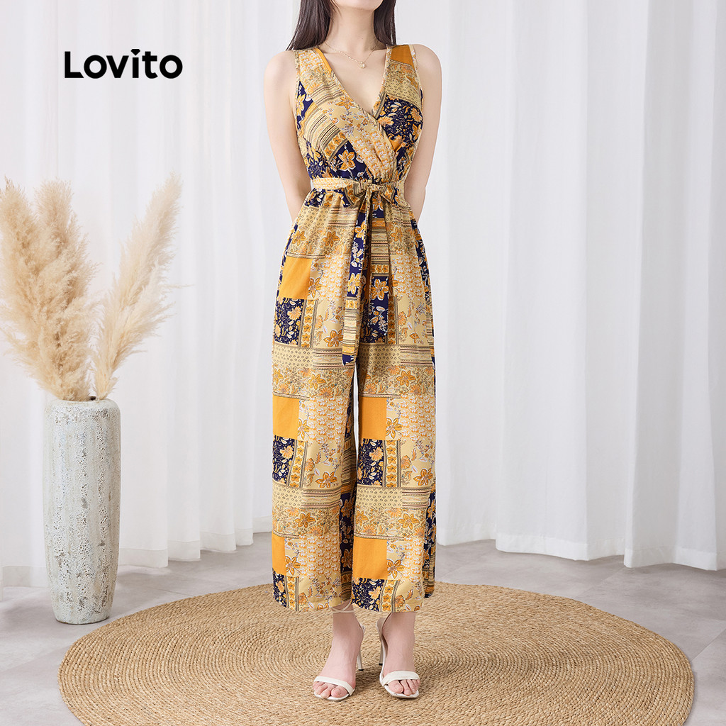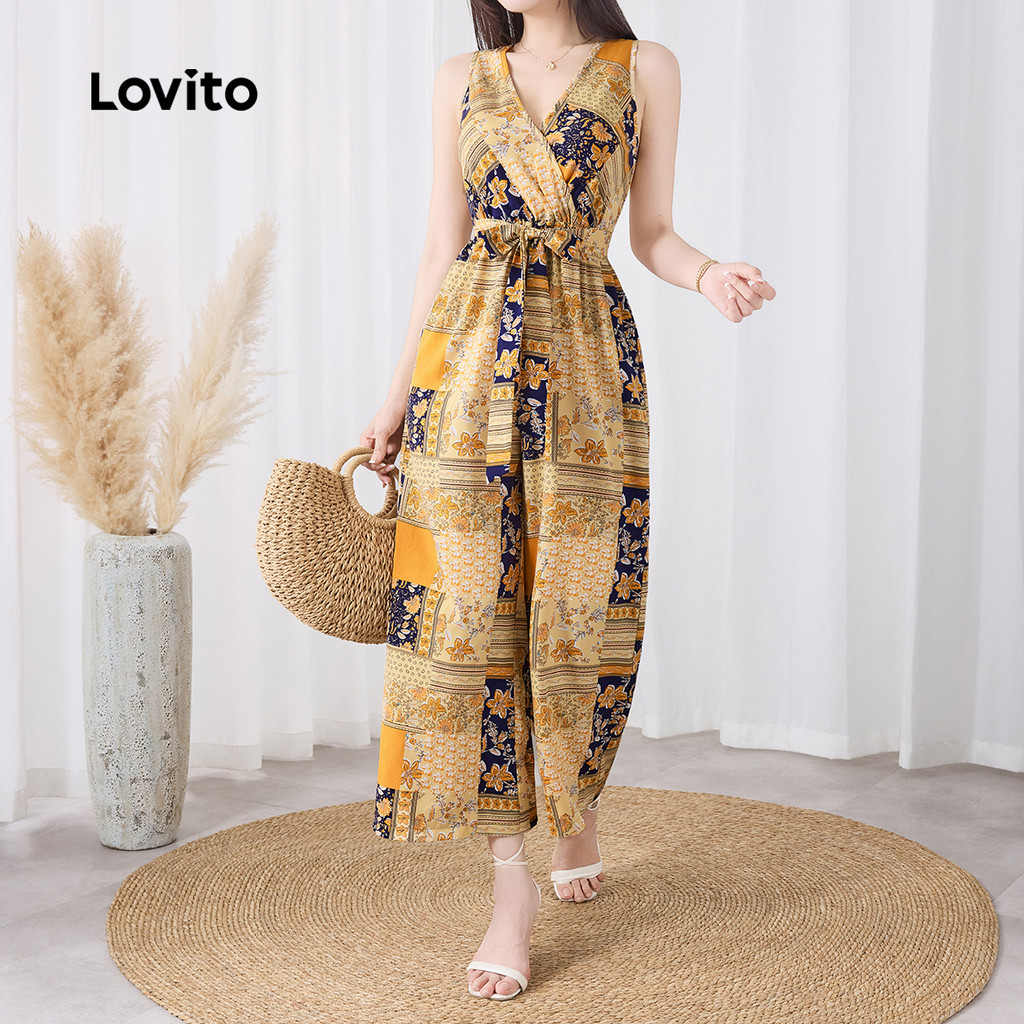Lovito Macacão Casual Com Estampa Tribal Estilo Resort Verão/primavera Para Mulheres L132ED593