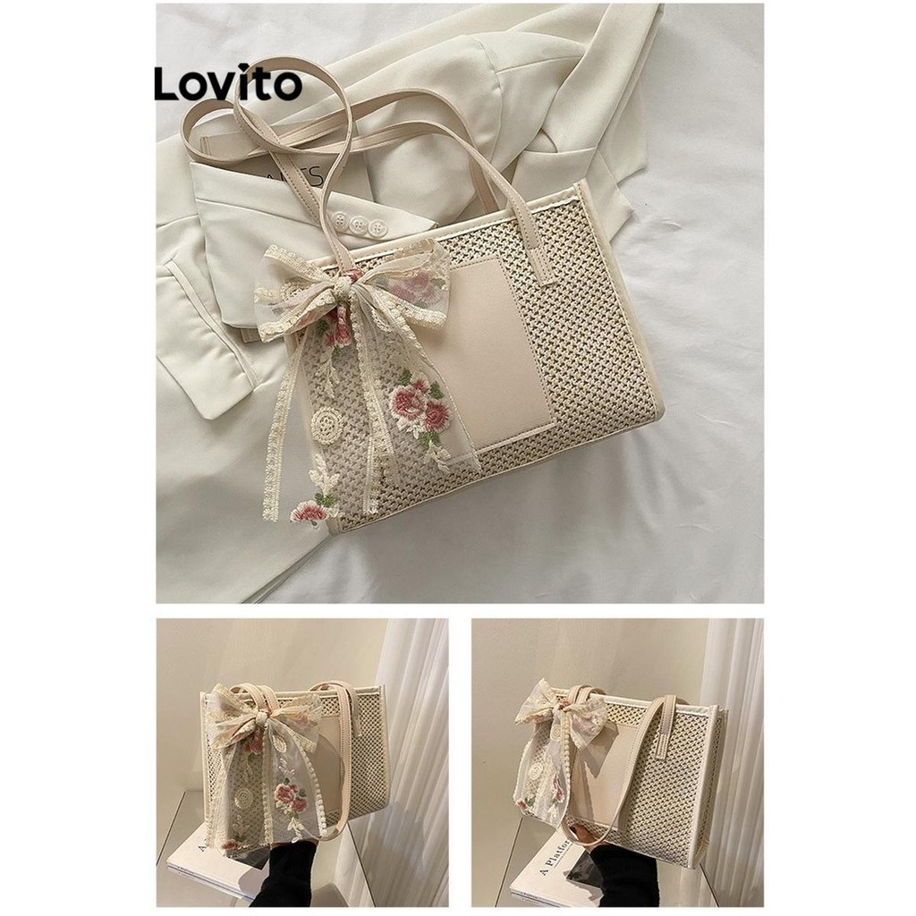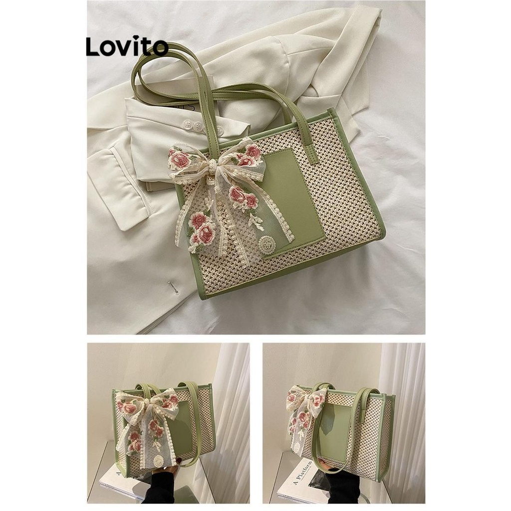 (Trendy) Lovito Casual Simples Moda Trança Bolsa de Ombro Grande Capacidade Bolsa de Ombro Tote para Mulheres LFA51515