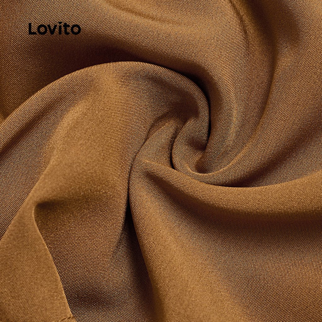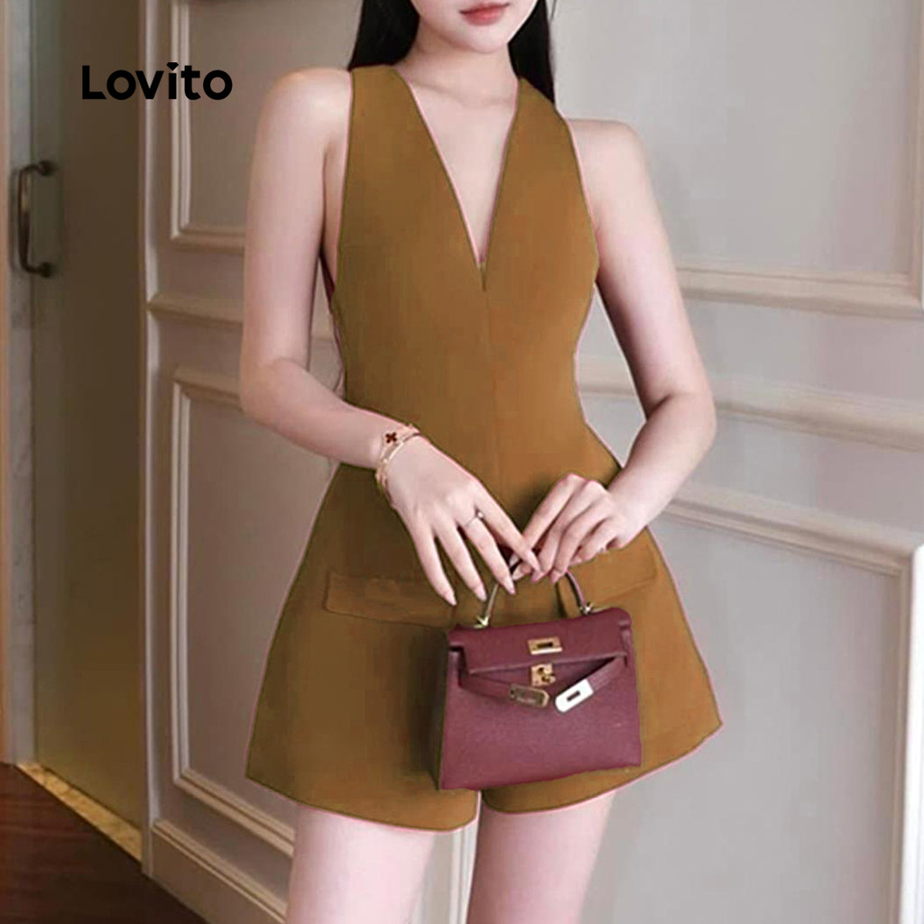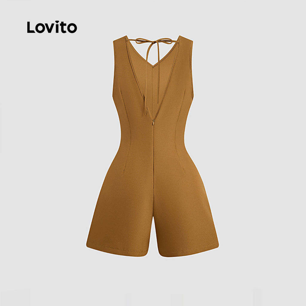 (New) Lovito Macacão Elegante com Bolso Falso Sem Costas com Laço Traseiro Primavera/verão Marrom L142ED432