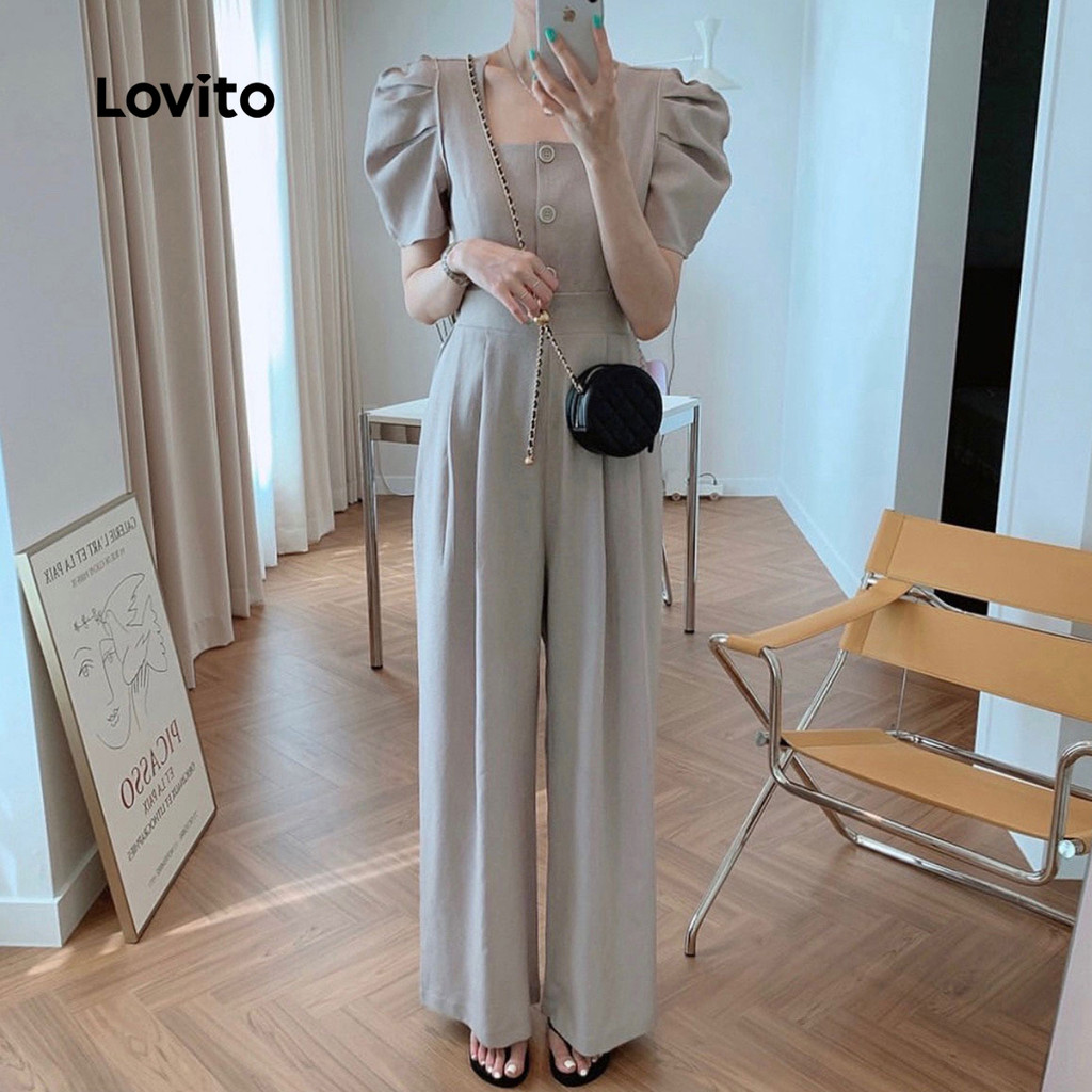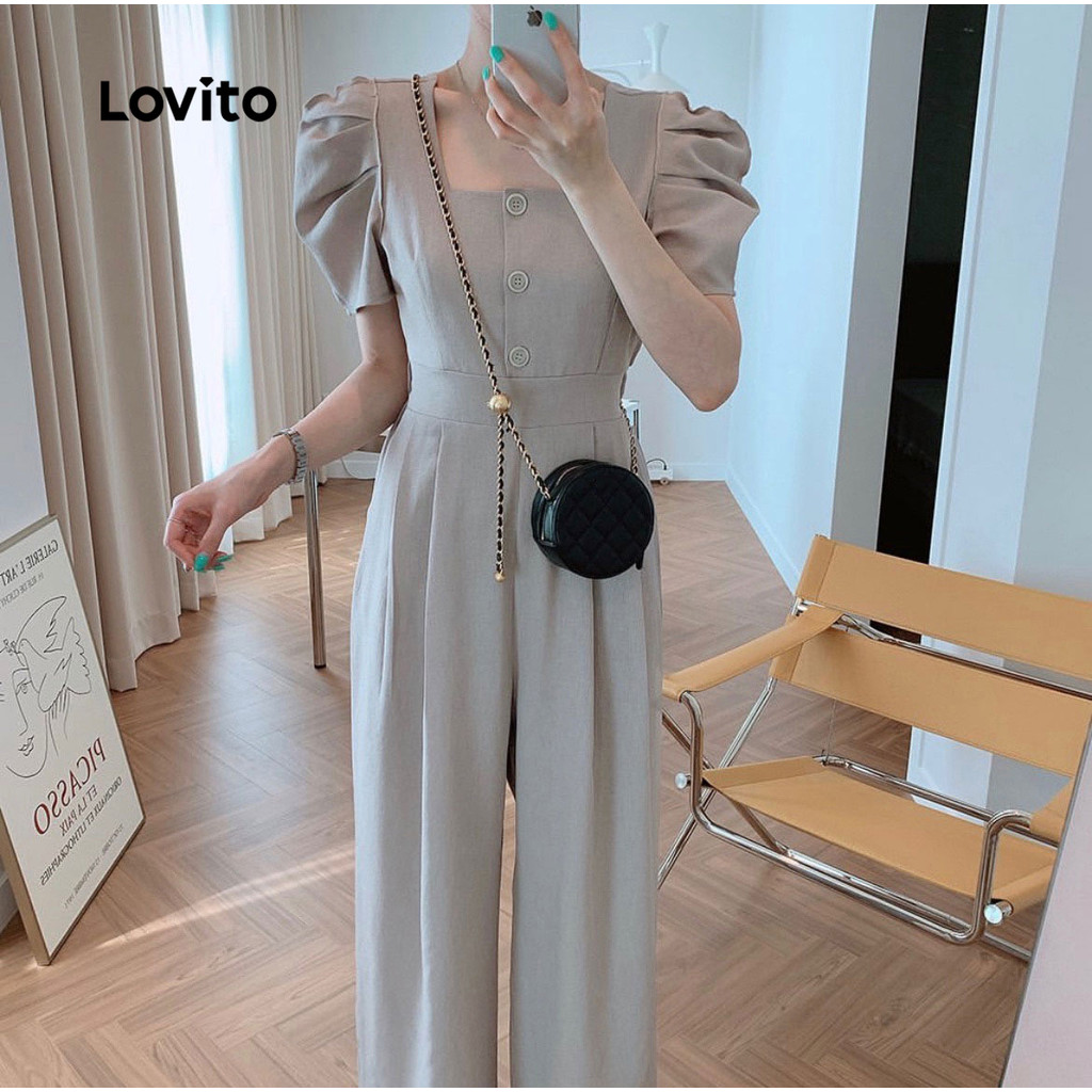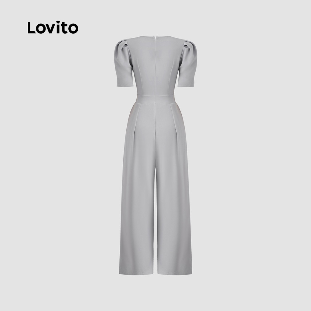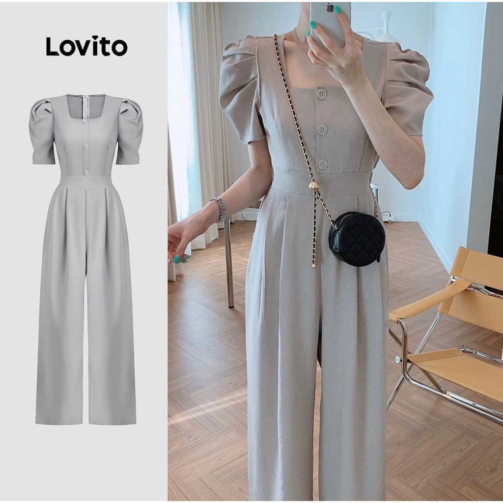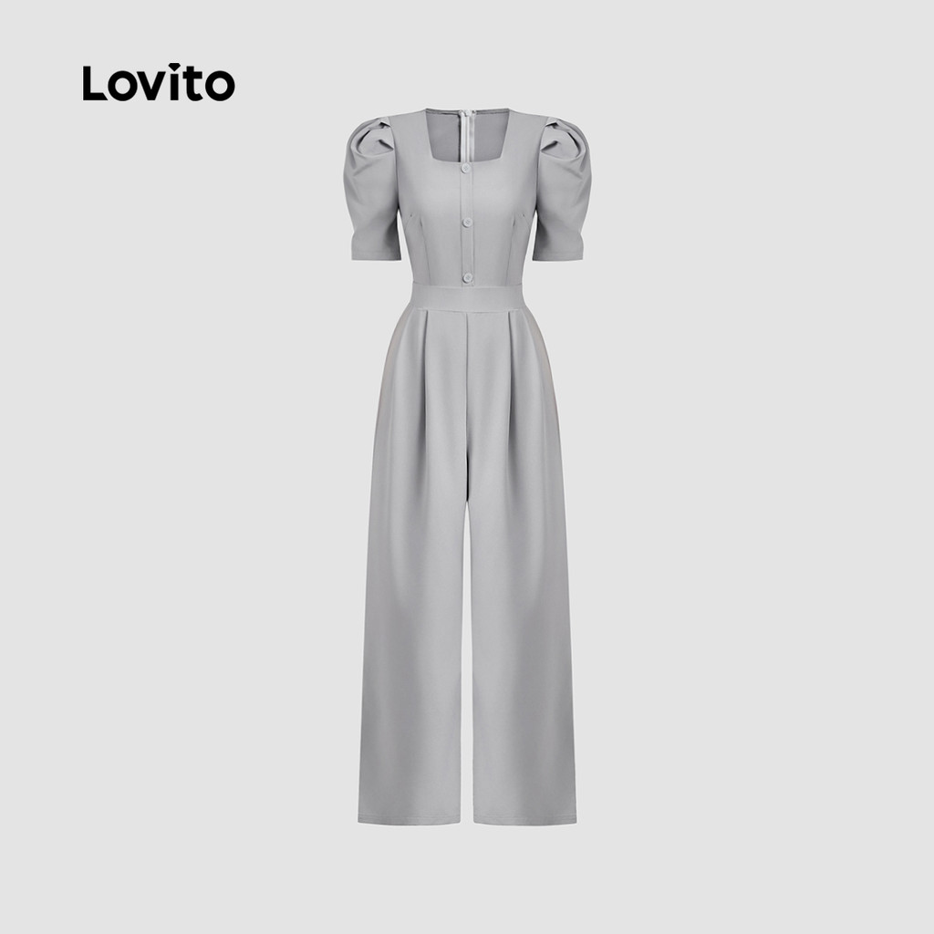 Lovito Macacão Casual com Botões para Rotina Primavera/verão Macacão Cinza para mulheres L149ED1211