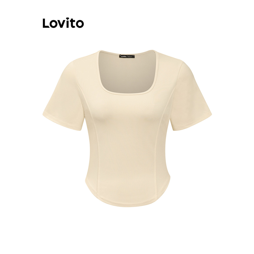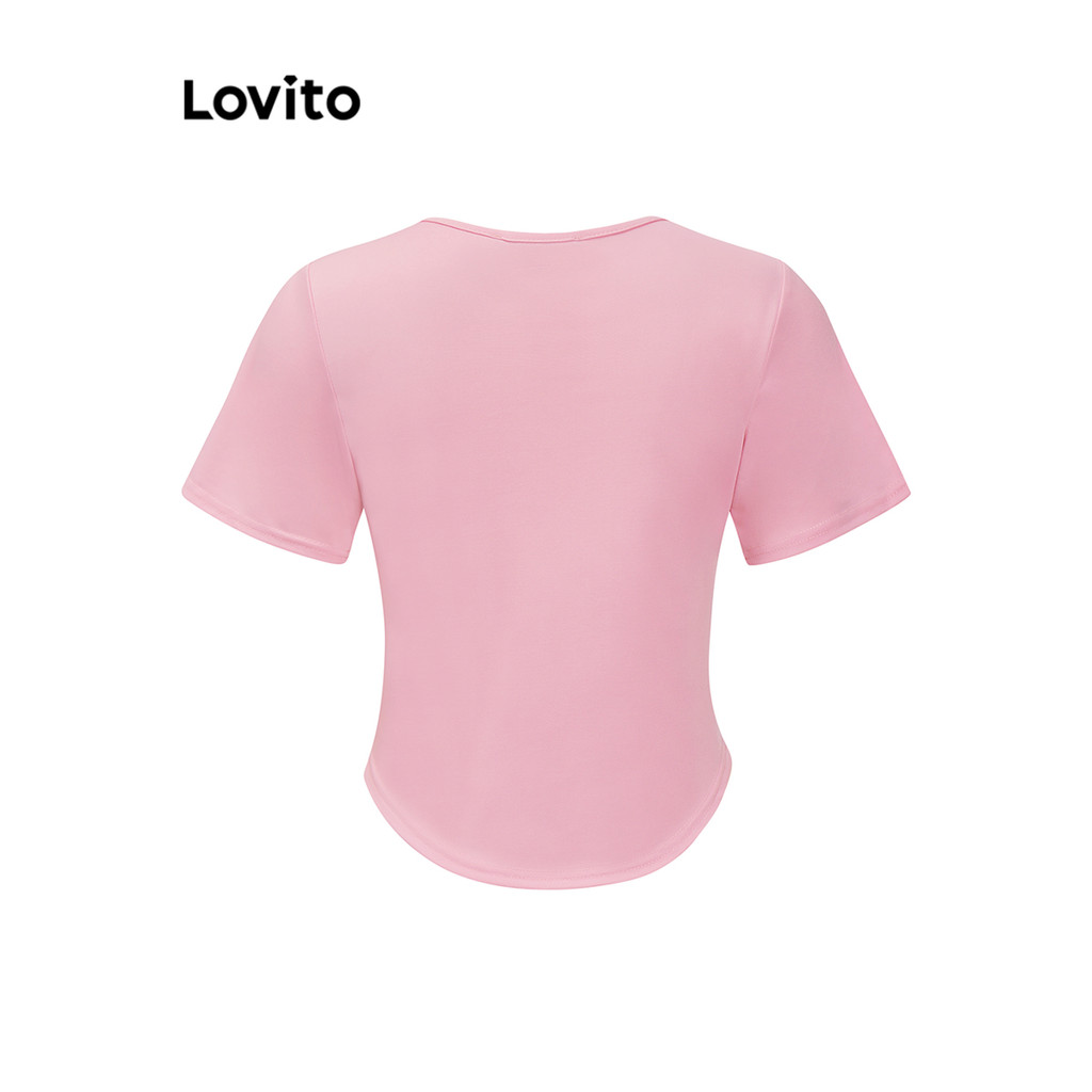 Lovito Camiseta Feminina Casual com Linhas de Estrutura Lisa em Multicolorido LNE31215