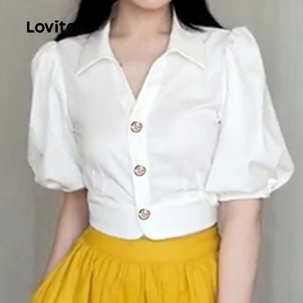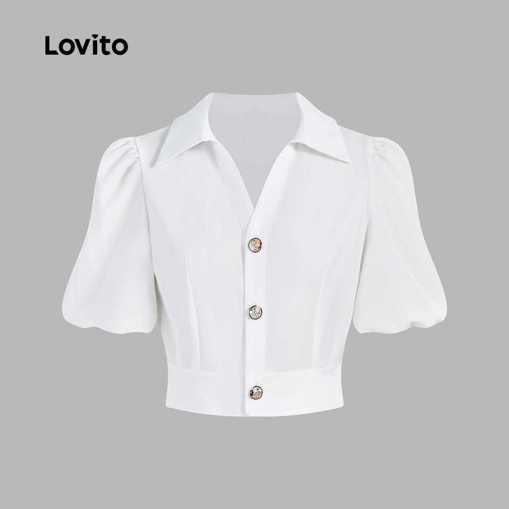 Lovito Blusa Feminina Sofisticada, Simples, Com Detalhes Metálicos, Gola Redonda, Para Verão e Primavera L131LD1052