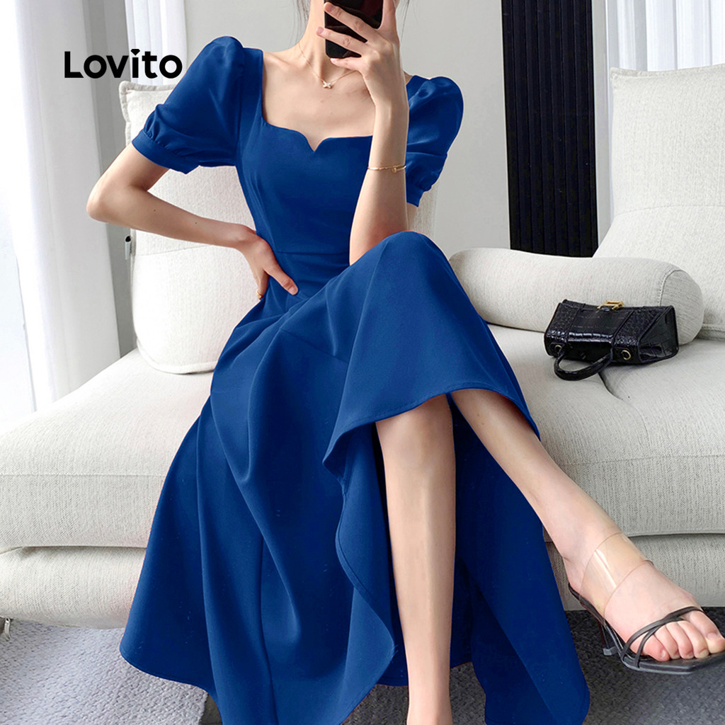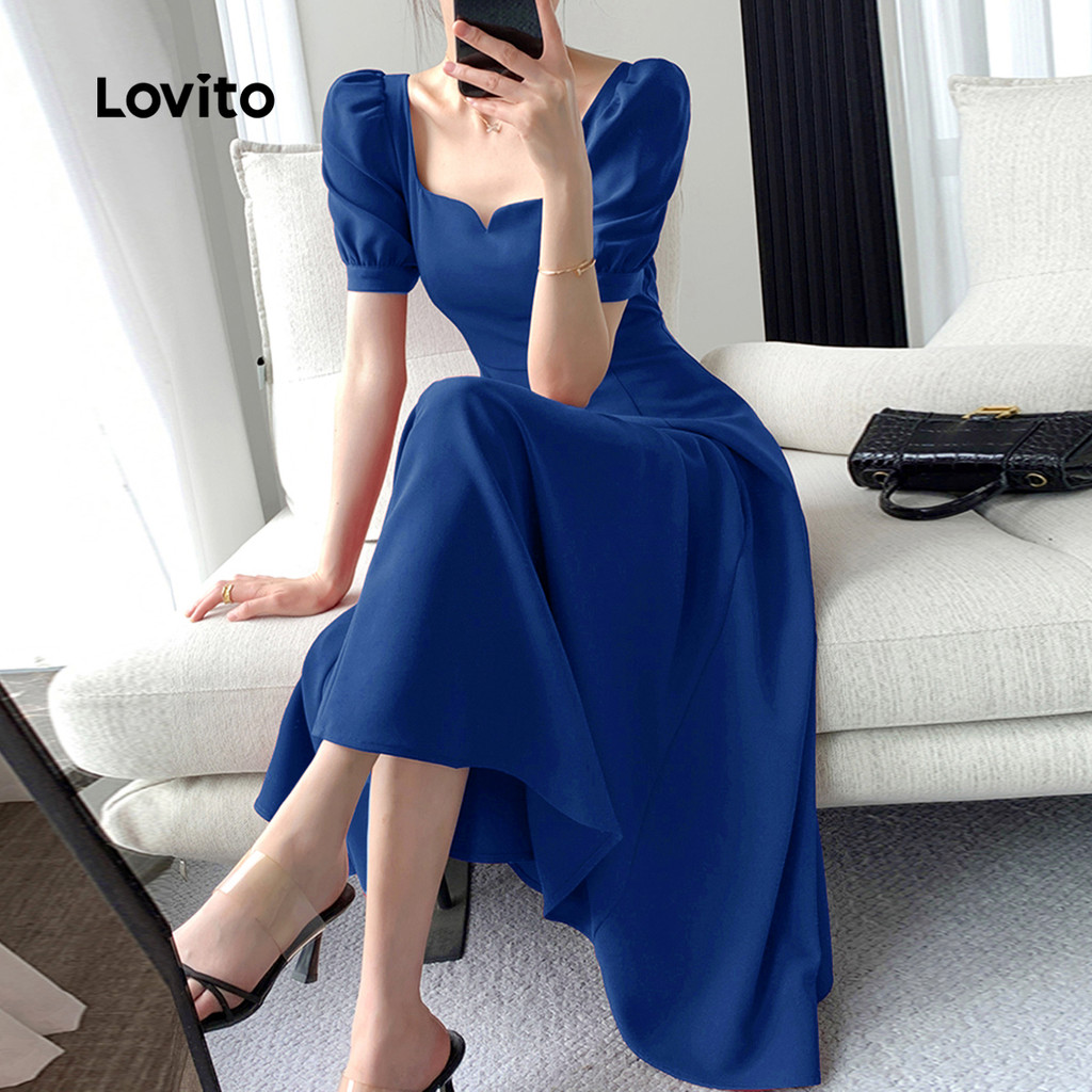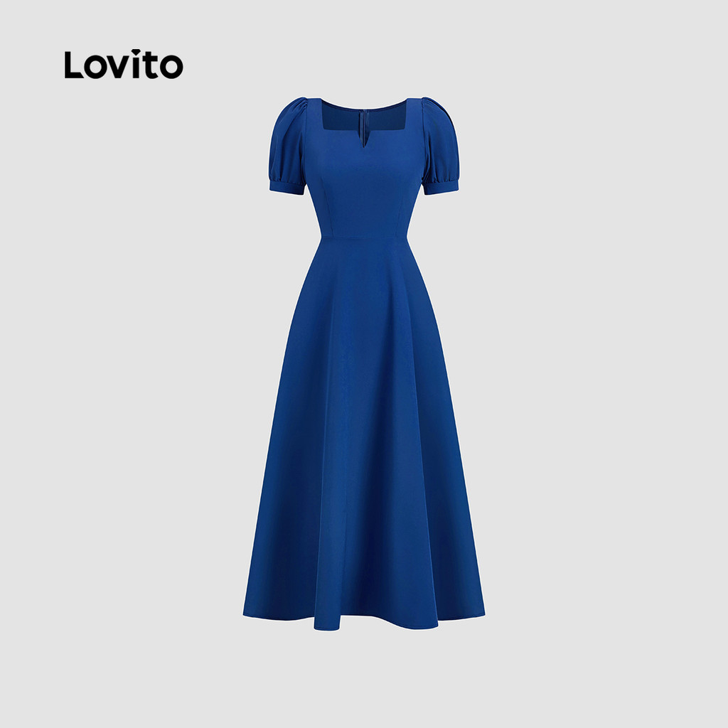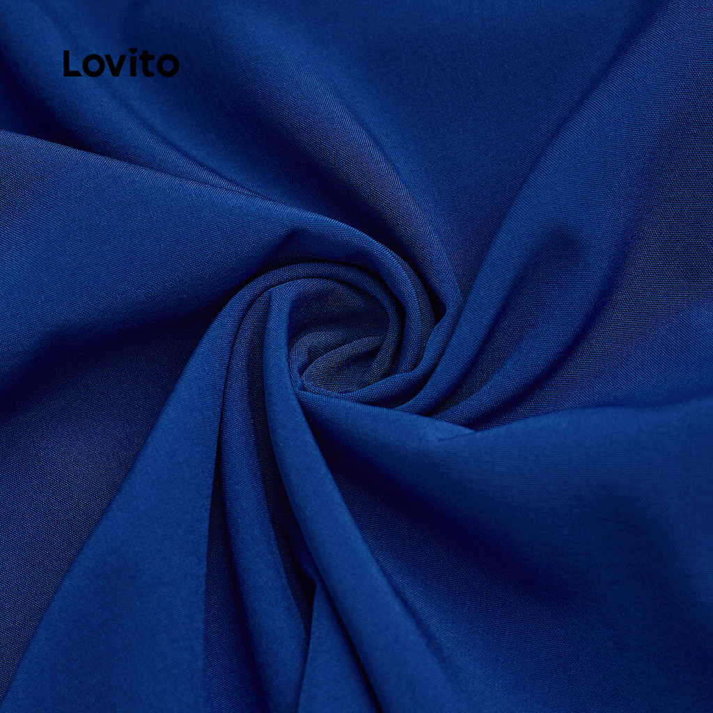 Lovito Vestido Feminino Azul, Design Elegante para Verão e Primavera, Modelagem Simples L134ED807