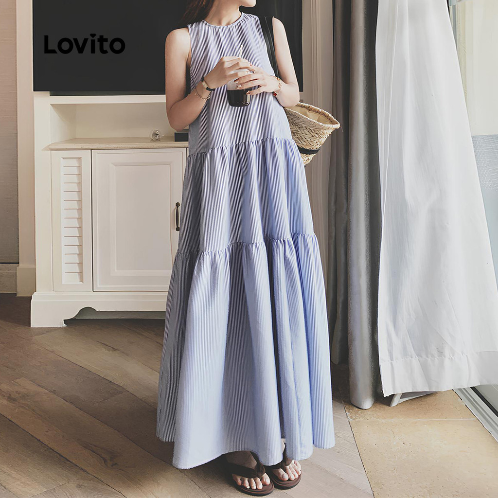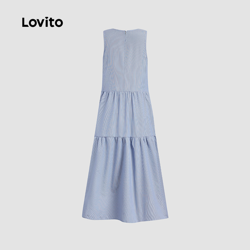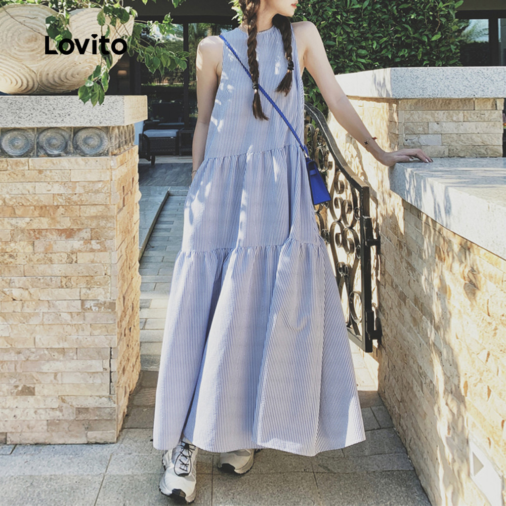 Lovito Vestido Casual Azul De Férias Com Camadas Em Camadas Primavera/verão Para Mulheres L154LD236