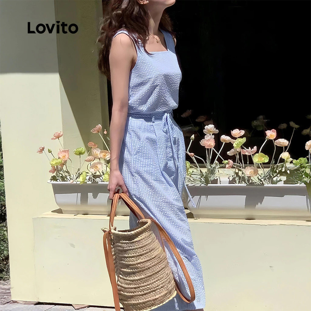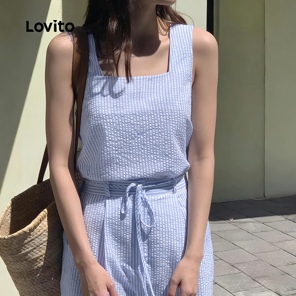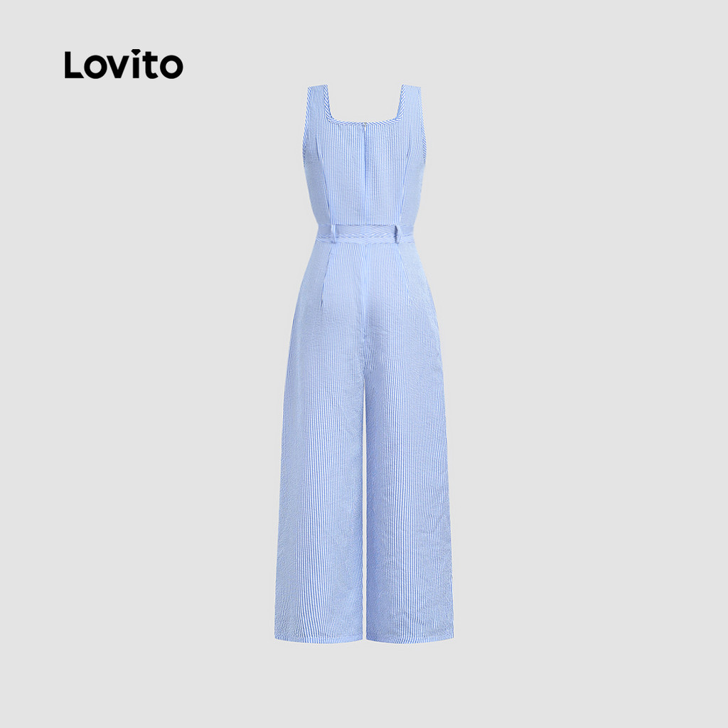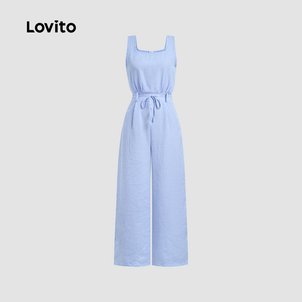 Lovito Macacão Casual de Renda com Amarração Primavera/verão Macacão Azul para Mulheres L155AD1294