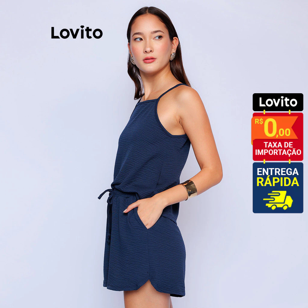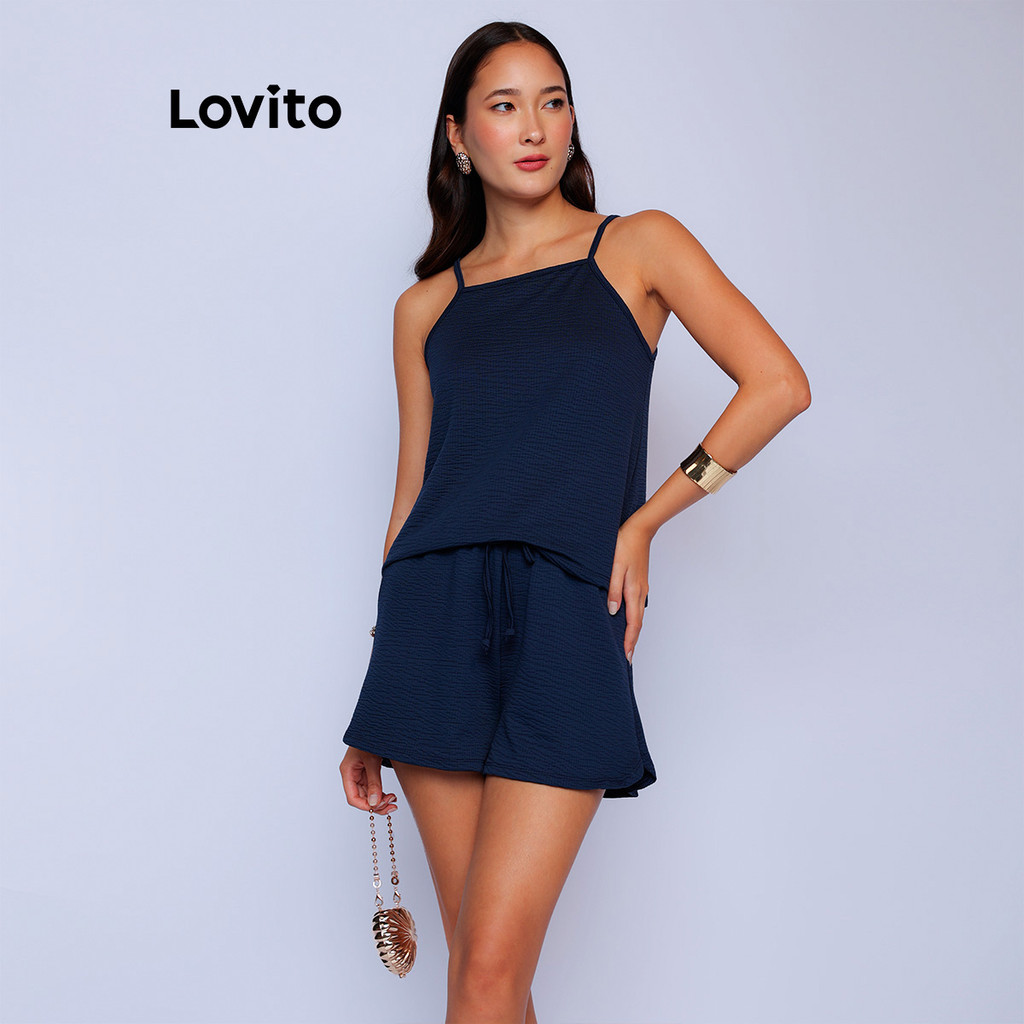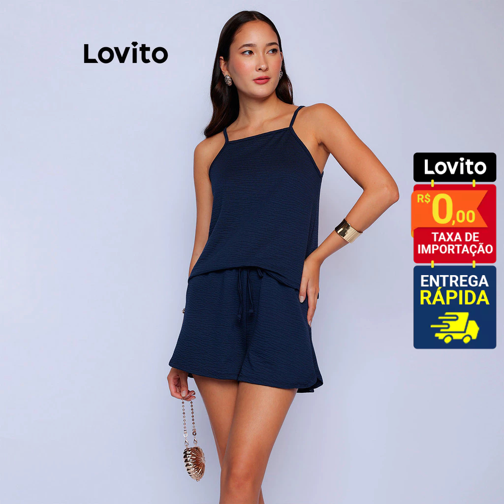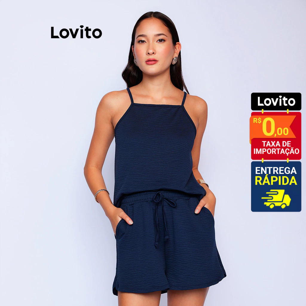Lovito x Glenda Conjunto Casual Regata e Shorts com Corda Ajustável Feminino LB926BRL956
