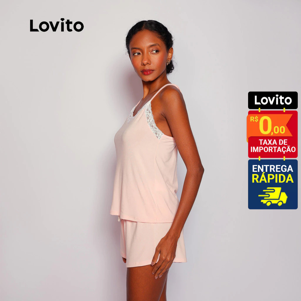 Lovito Pijama Fofo Liso com Renda e Cordão para Mulheres LB795BRL825