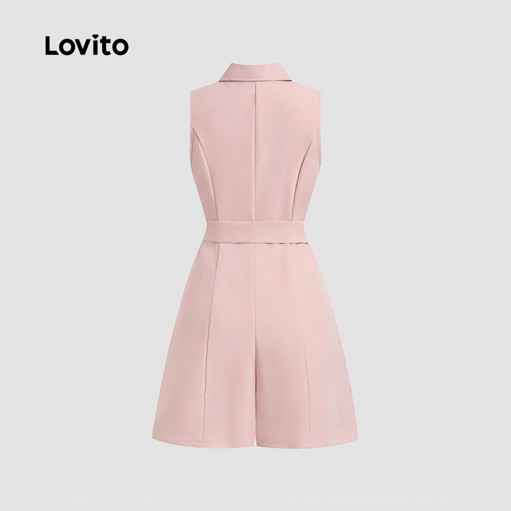 Lovito Macacão Casual com Cinto com Botões Na Primavera/verão Rosa para mulheres L150ED361