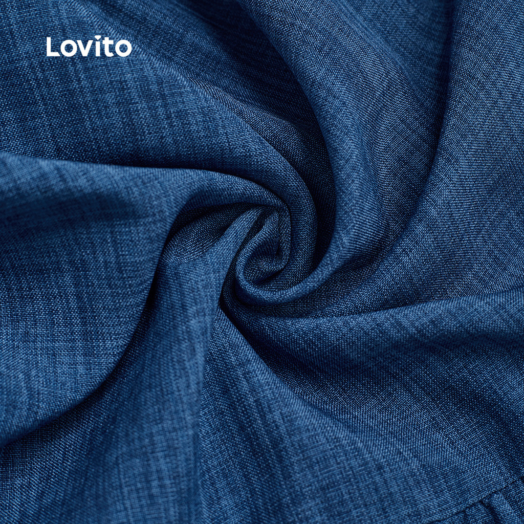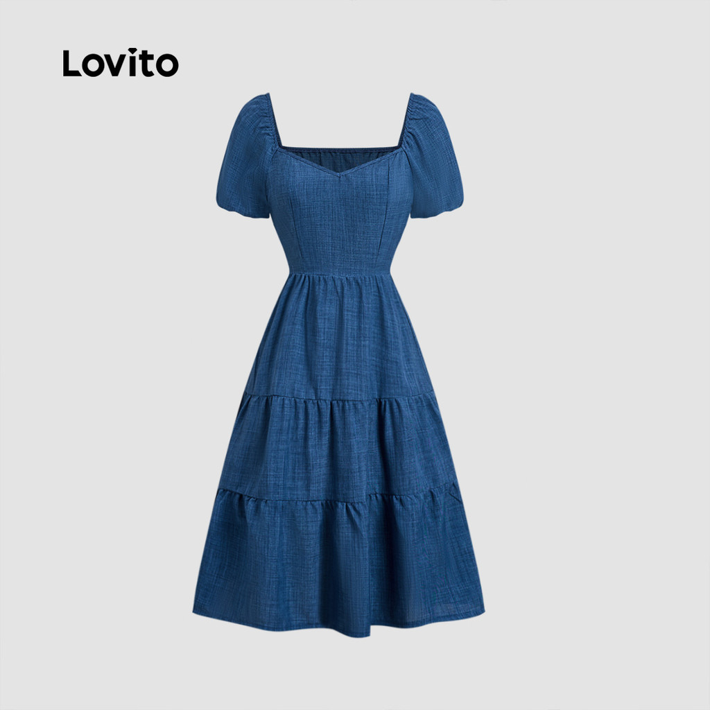 Lovito Estrutura de Roupa Casual Linha de Vestido de Primavera/verão Azul para mulheres L149ED144