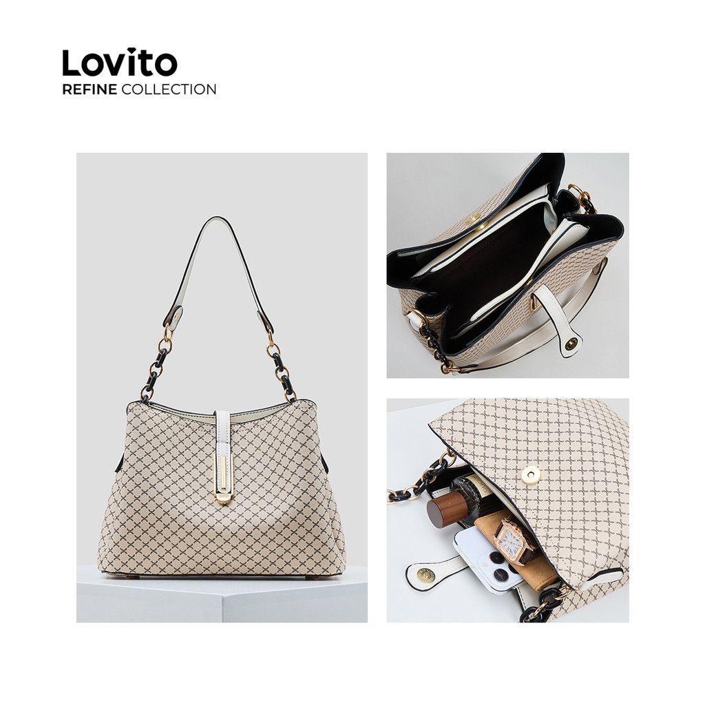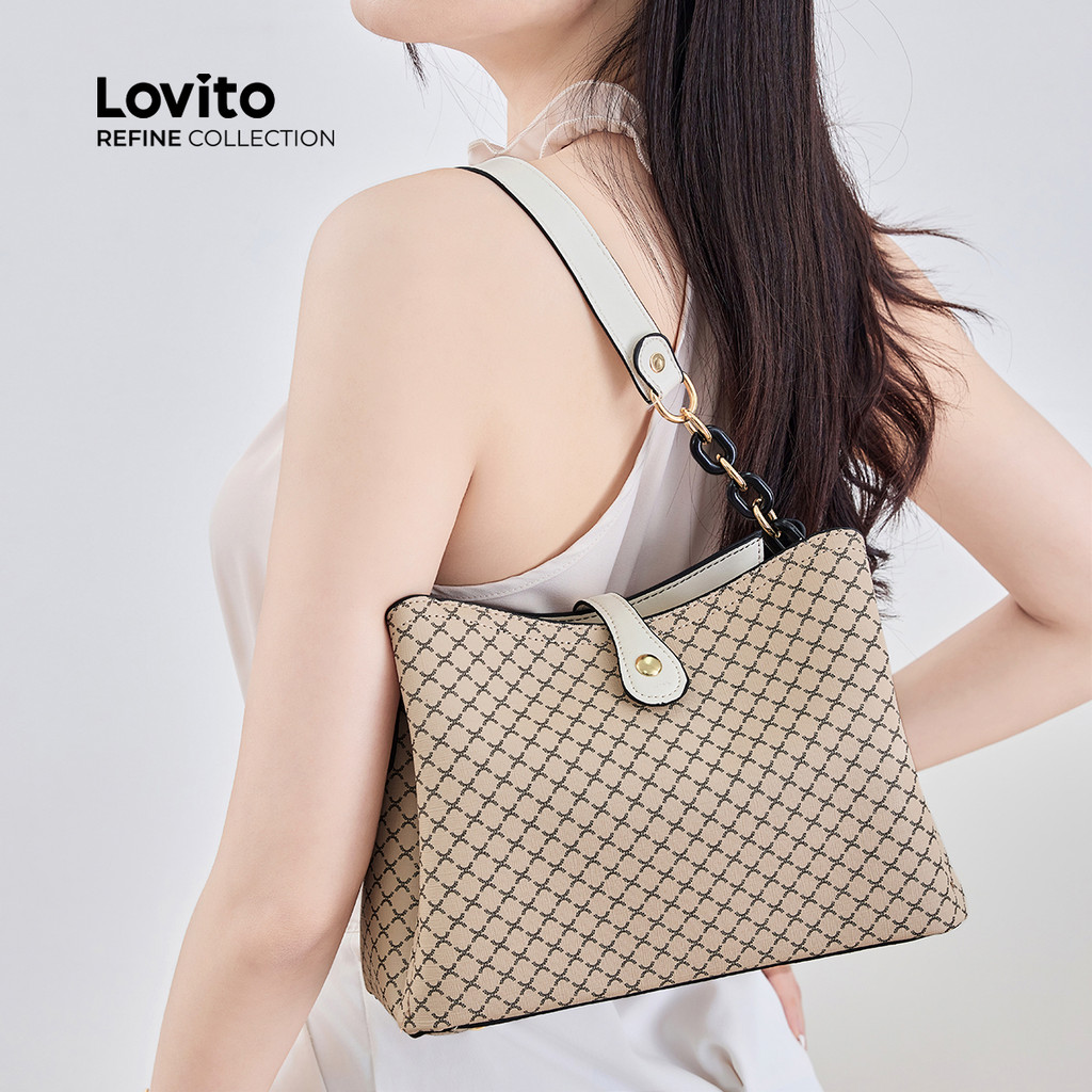 (Lovito Refine) Elegante simples grande bolsa de ombro pequena para mulheres LFAR11016
