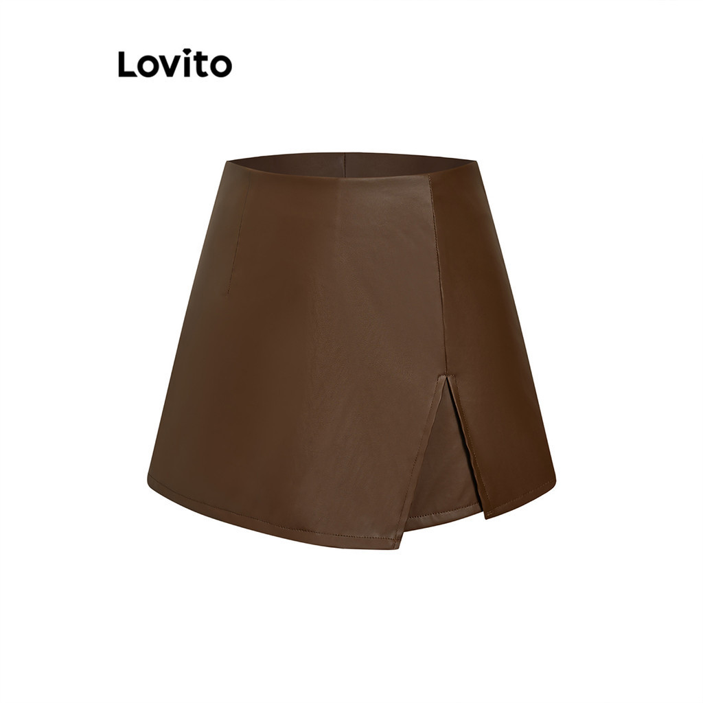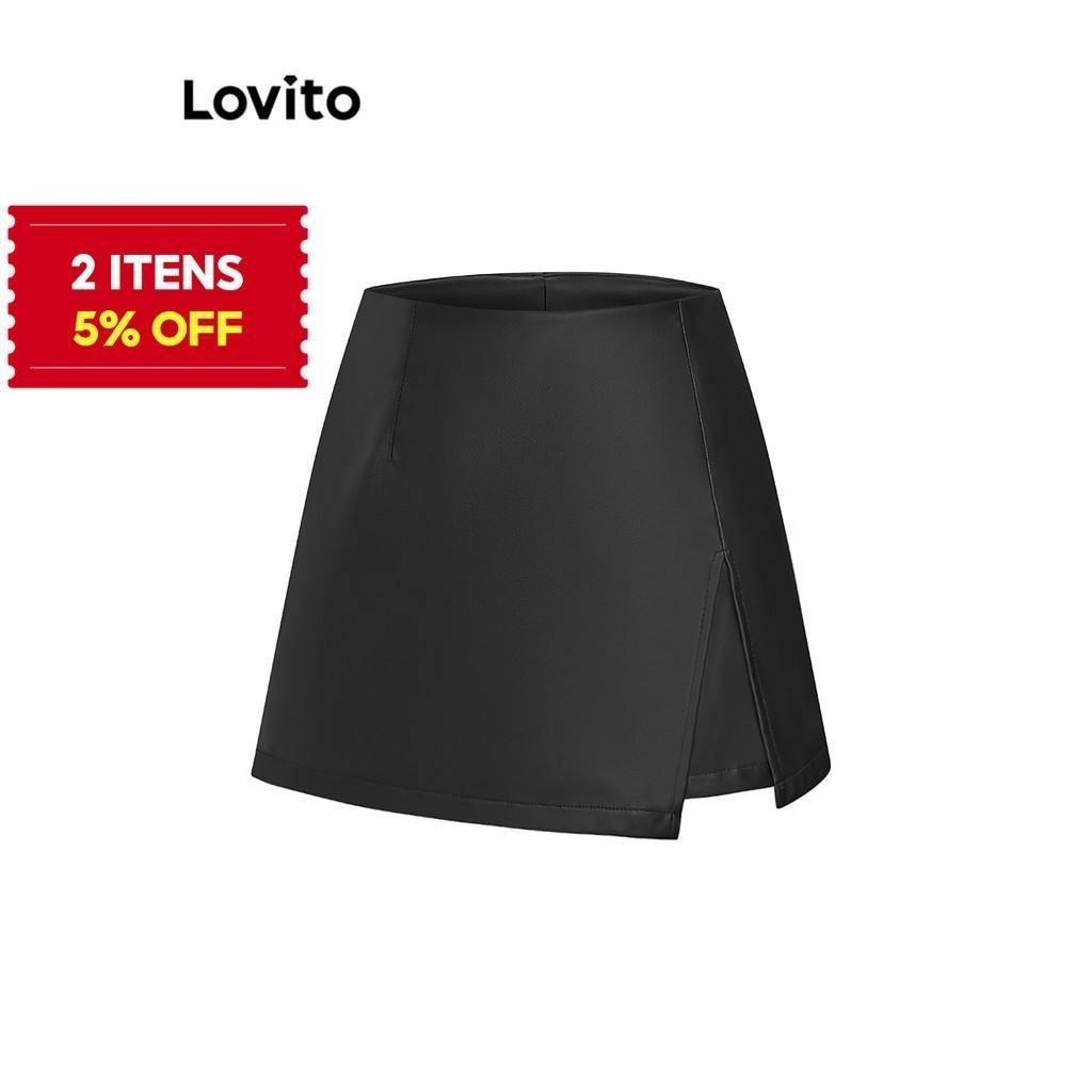 (KOL‘s pick) Lovito Shorts Falsos 2 em 1 com Zíper para Mulheres L58AD065 (Preto)