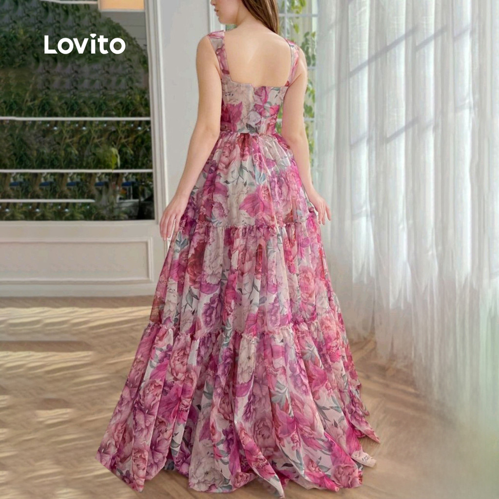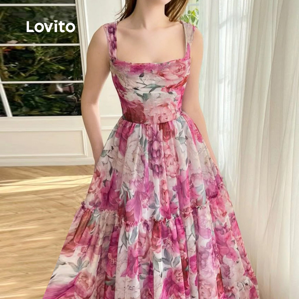(Trendy) Lovito Vestido Boho com Zíper em Camadas Toque Suave Vestido de Primavera/verão para Mulheres L145LD050