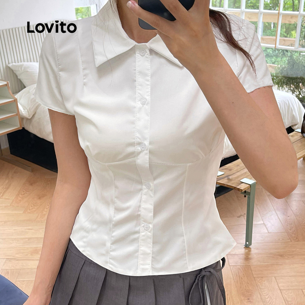 Lovito Blusa Casual Clássica E Versátil Com Botões Ideal Para a Primavera/verão Na Cor Branca Para Mulheres L156AD148