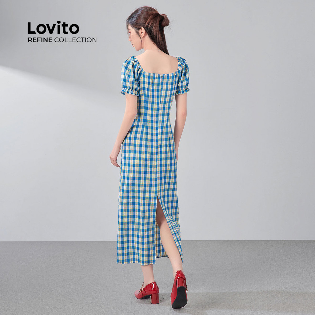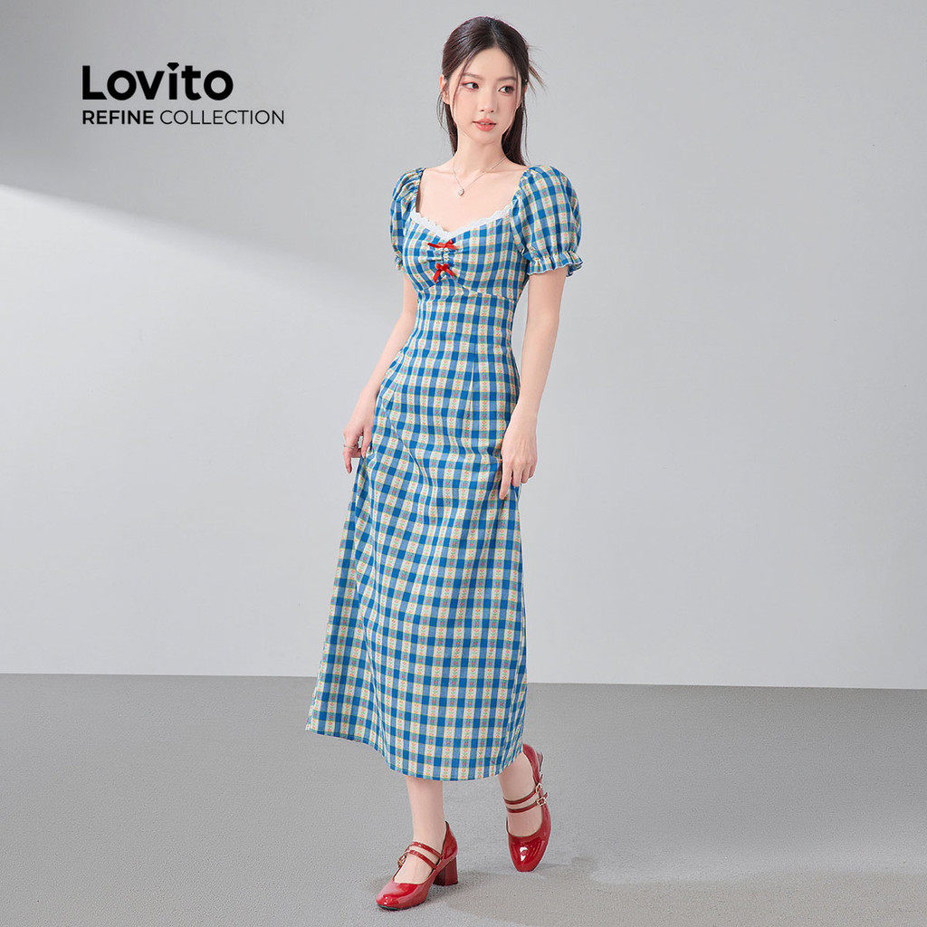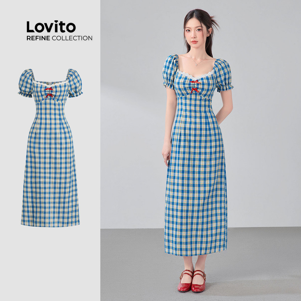(NEW) (Lovito Refine) Vestido Fofo com Laço para Primavera/verão Azul para mulheres LR21A082