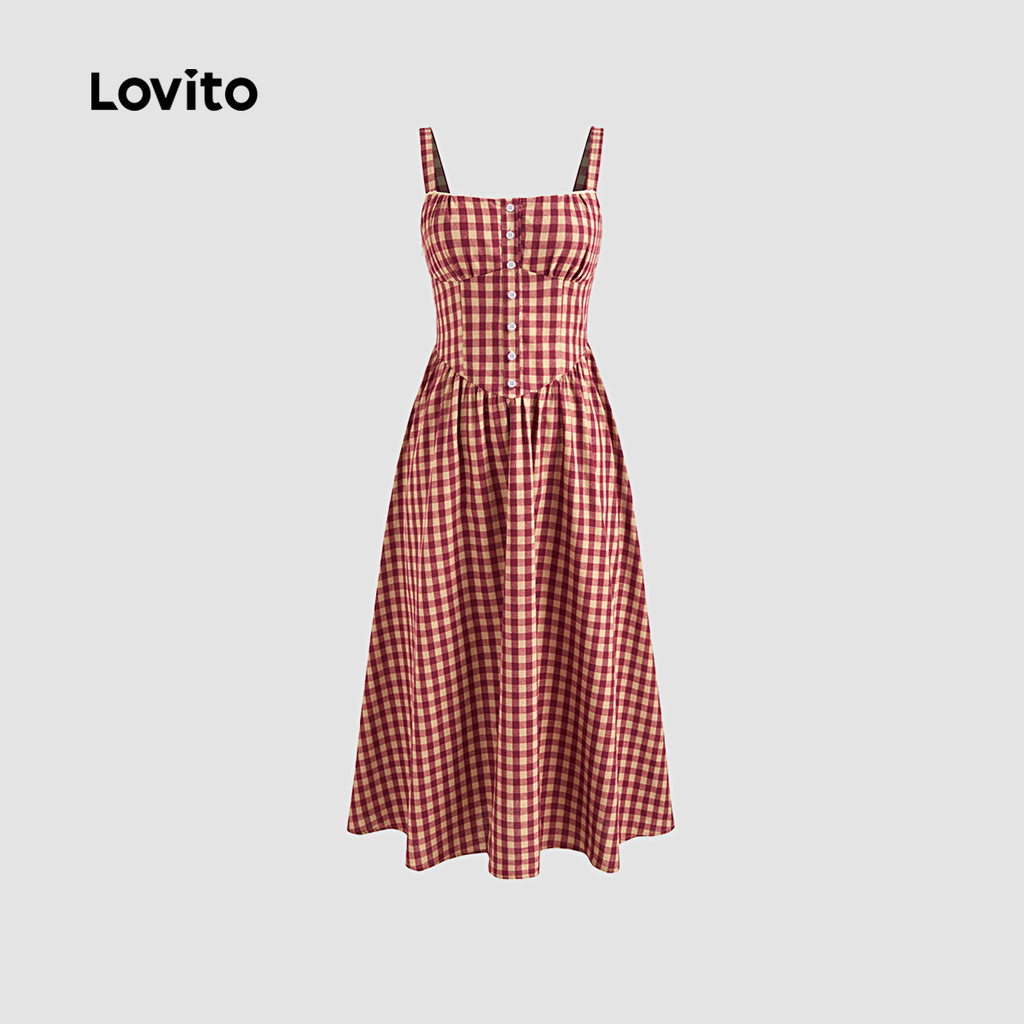 Lovito Vestido Casual com amarração nas costas e botão drapeado vestido vermelho primavera/verão para mulheres L173AD228