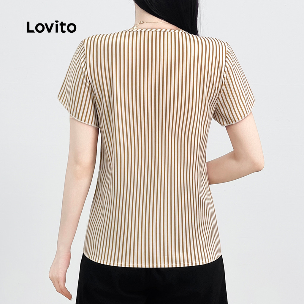 Lovito Blusa Elegante E Simples Para Uso Diário, Blusa Cáqui Simples Para Primavera/verão Para Mulheres L138ED071