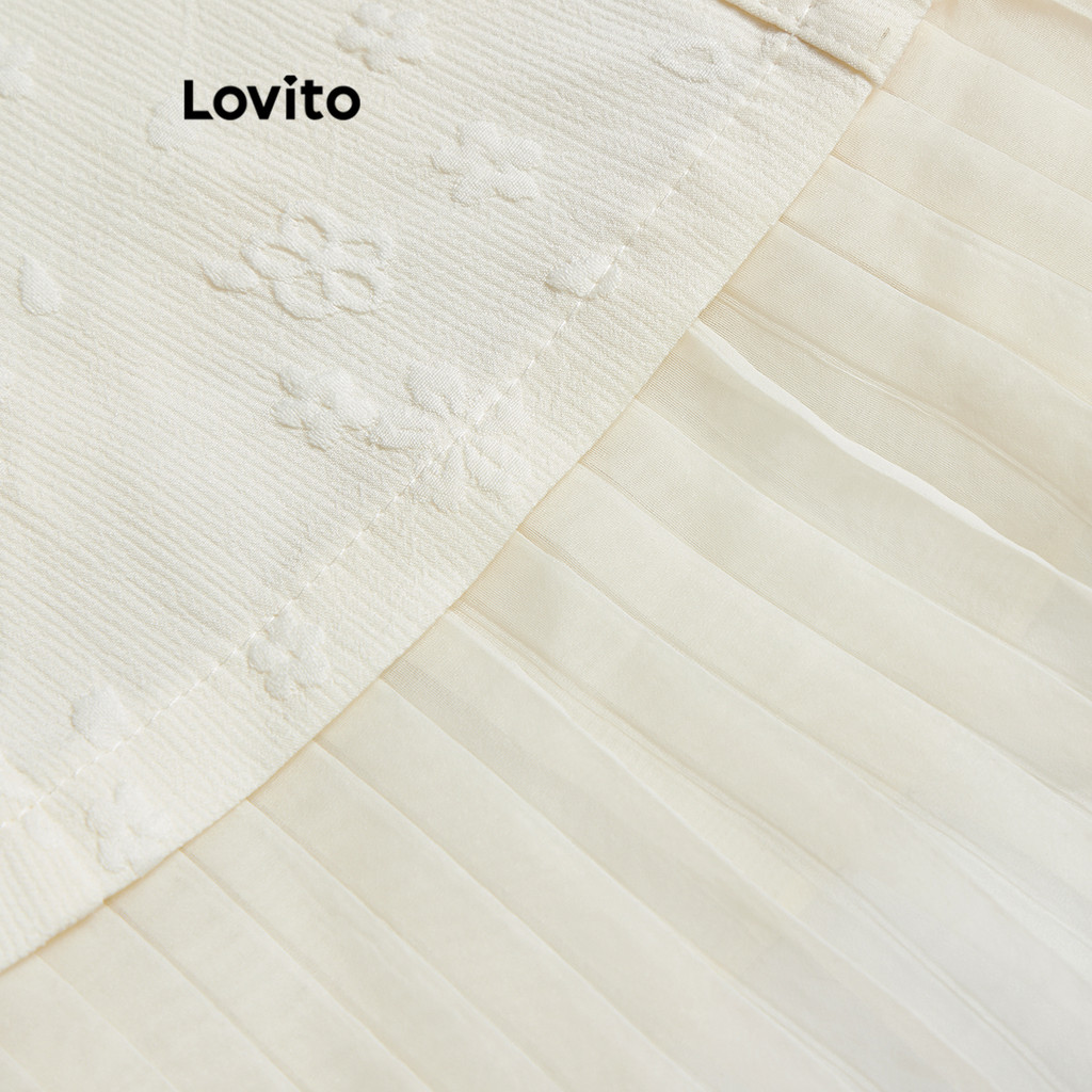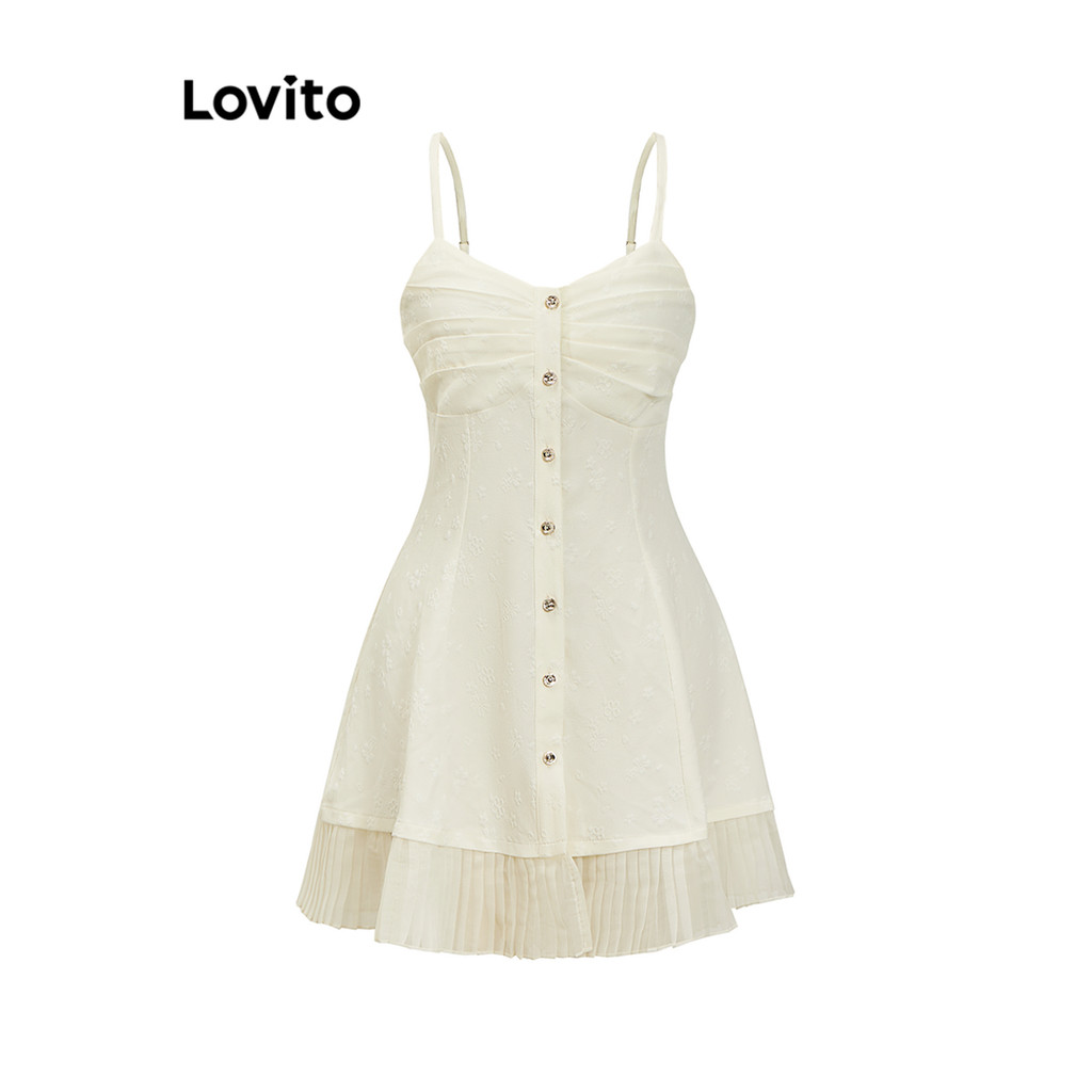 (Trendy) Lovito Vestido Casual Verão Plissado Jacquard Botão Vestido Para Mulheres L86ED347