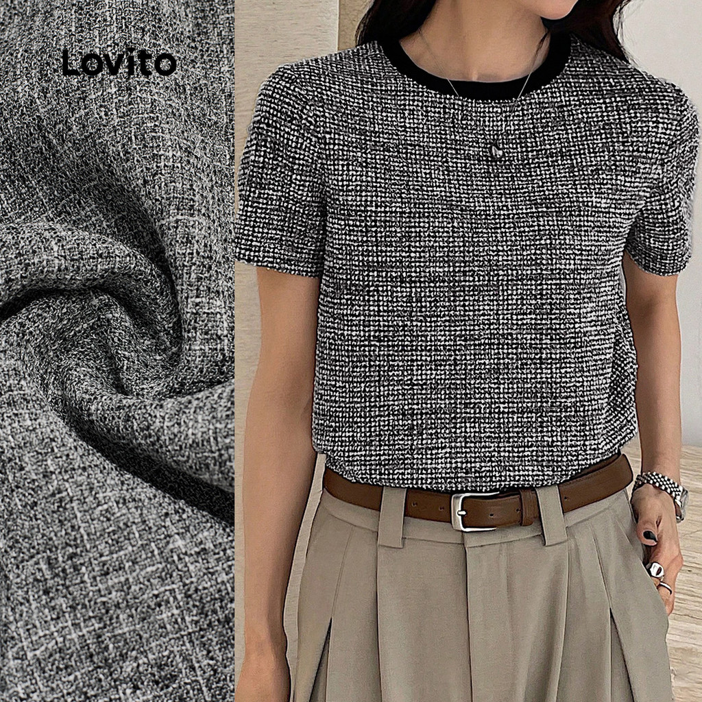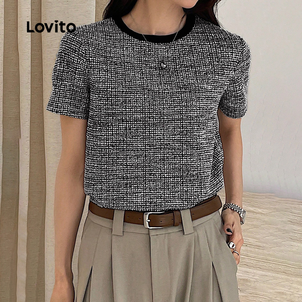 (Trendy2) Lovito Blusa Casual Colorblock com Acabamento em Contraste Simples para Primavera/verão Blusa preta L138ED010