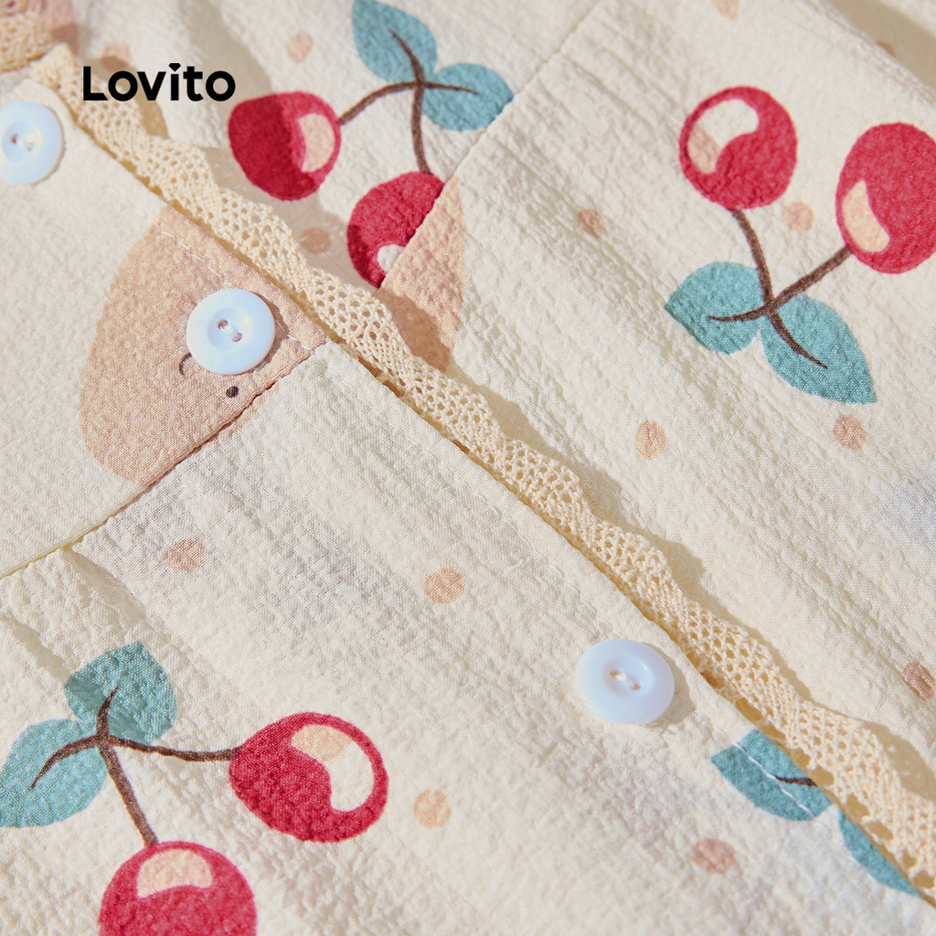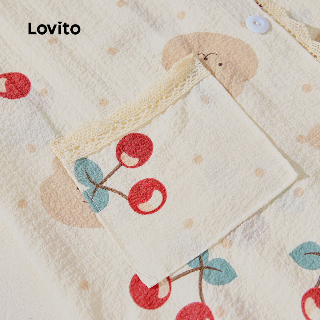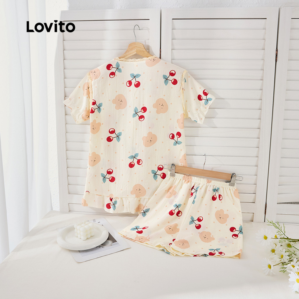 Lovito Conjunto De Pijama Feminino Casual Com Estampa Floral E Acabamento Em Alface E Damasco LNA104053