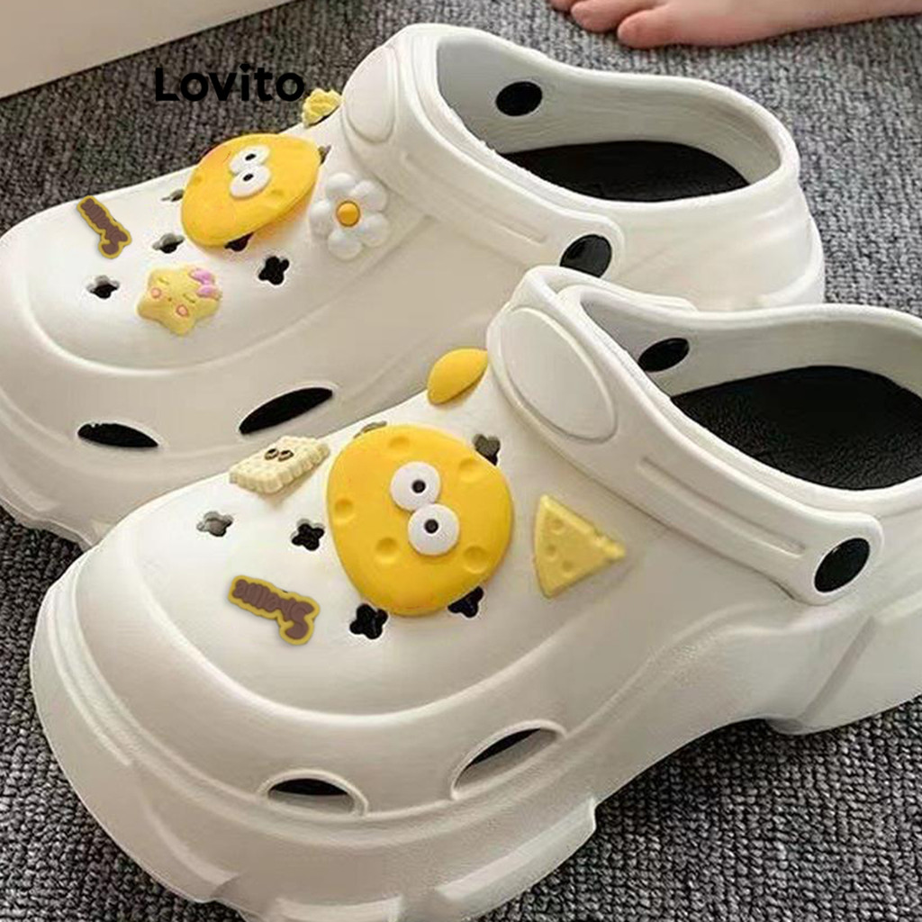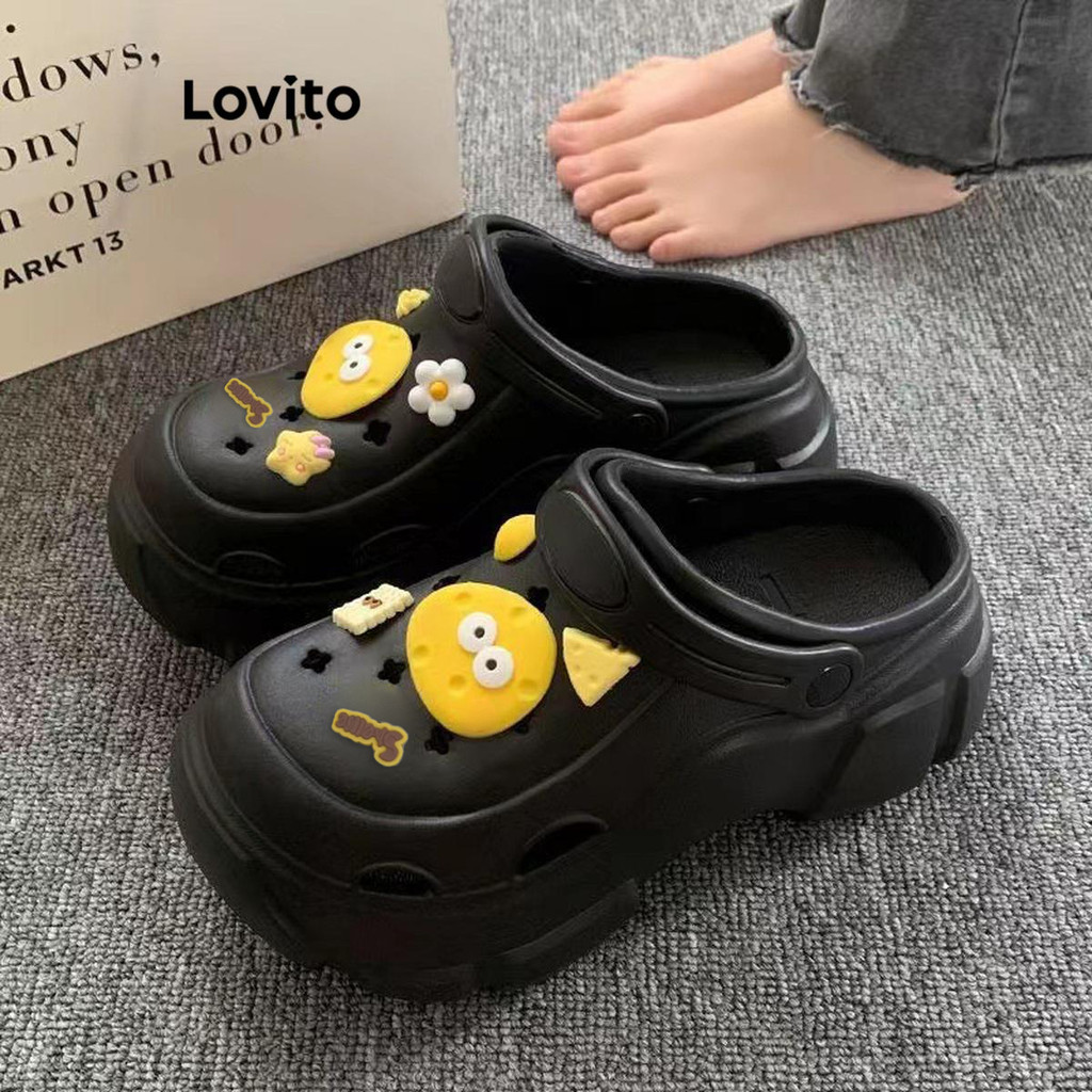 (Trendy) Lovito Sandália Plana Casual De Verão Com Fundo Macio E Sola Grossa Antiderrapante Para Mulheres LFA65204