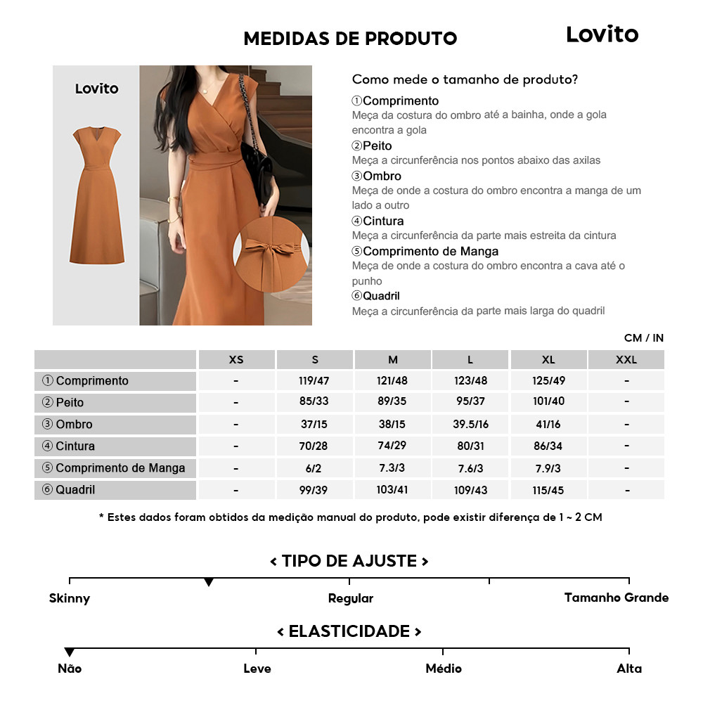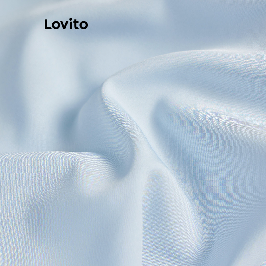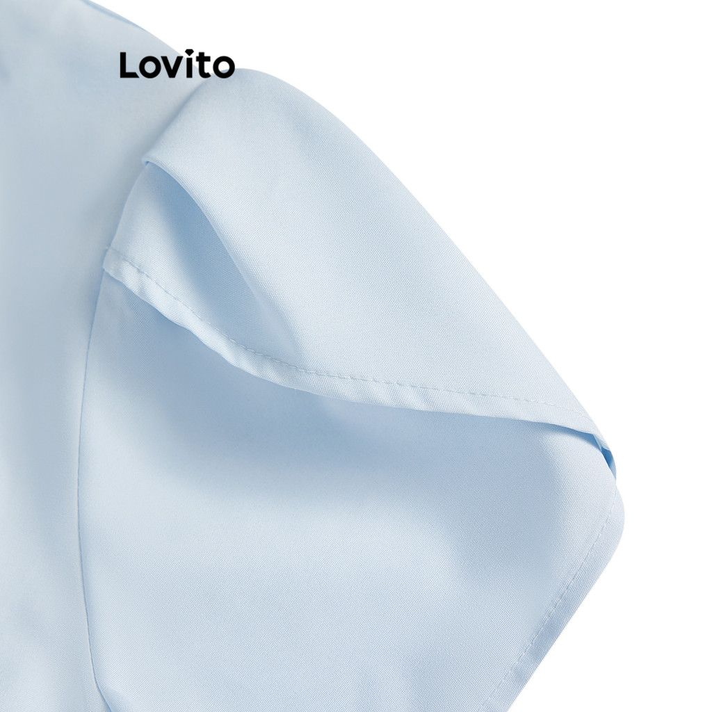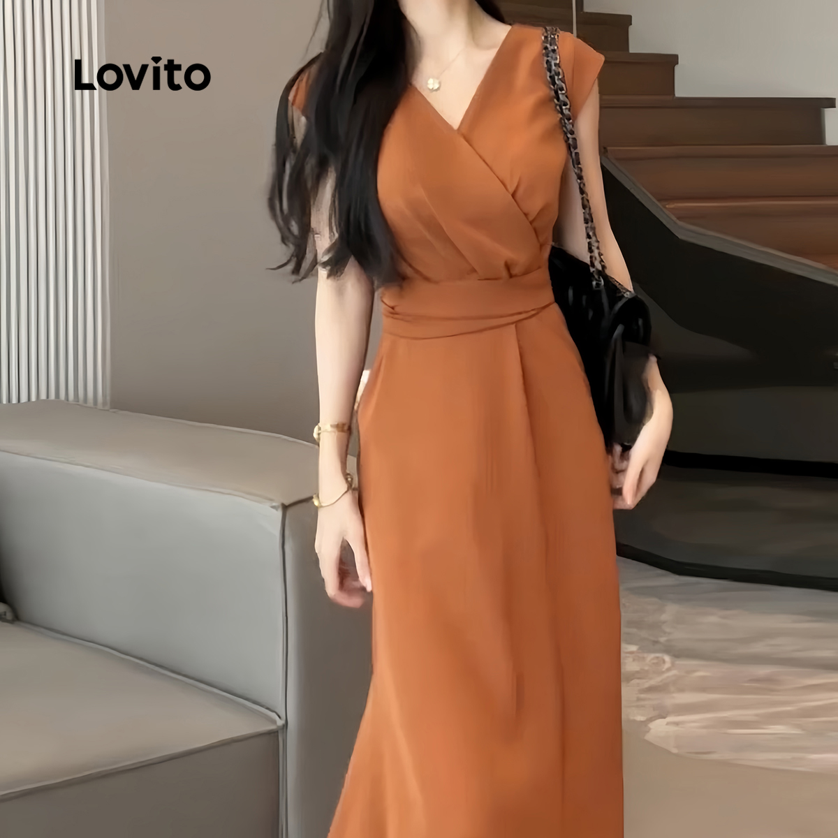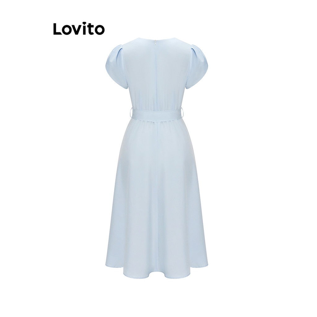 (Trendy) Lovito Vestido Casual Liso Com Cinto Evasê Para Mulheres L65ED138 (Damasco/Azul)