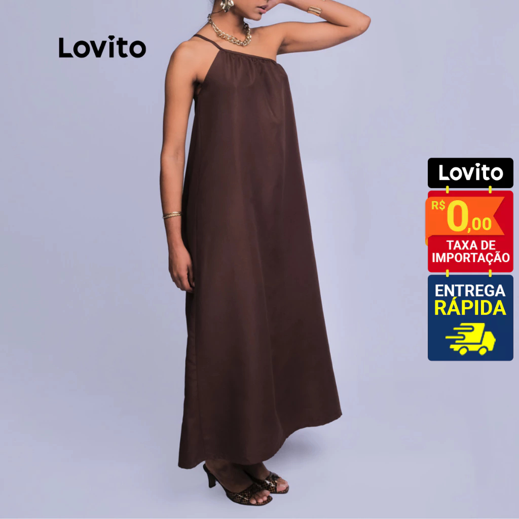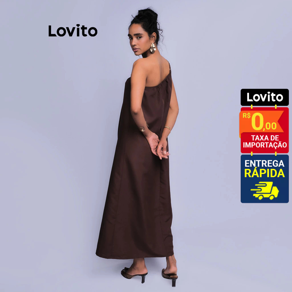 Lovito Vestido Um Ombro Só Longo Marrom Moda Elegante Liso Feminino LB605BRL635