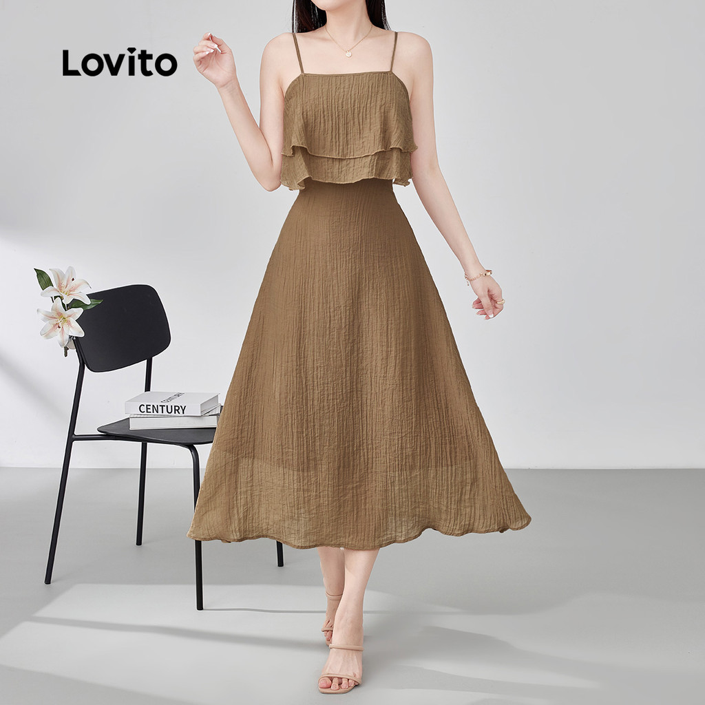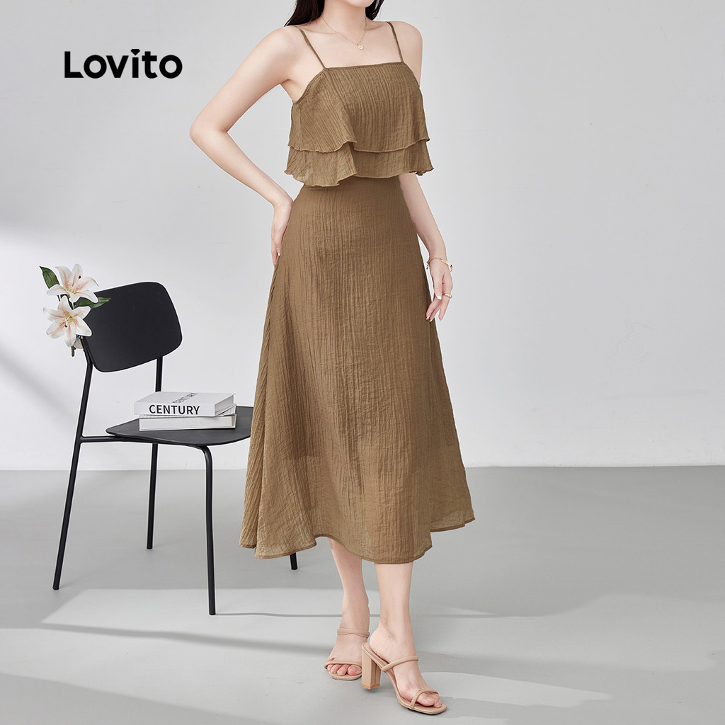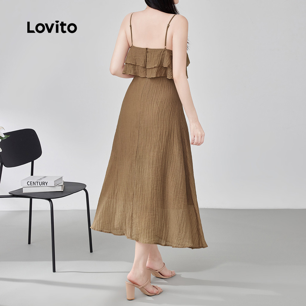 (New) Lovito Vestido Casual com Babado Barra de Babado Primavera/verão Calças Caqui para Mulheres L143ED128