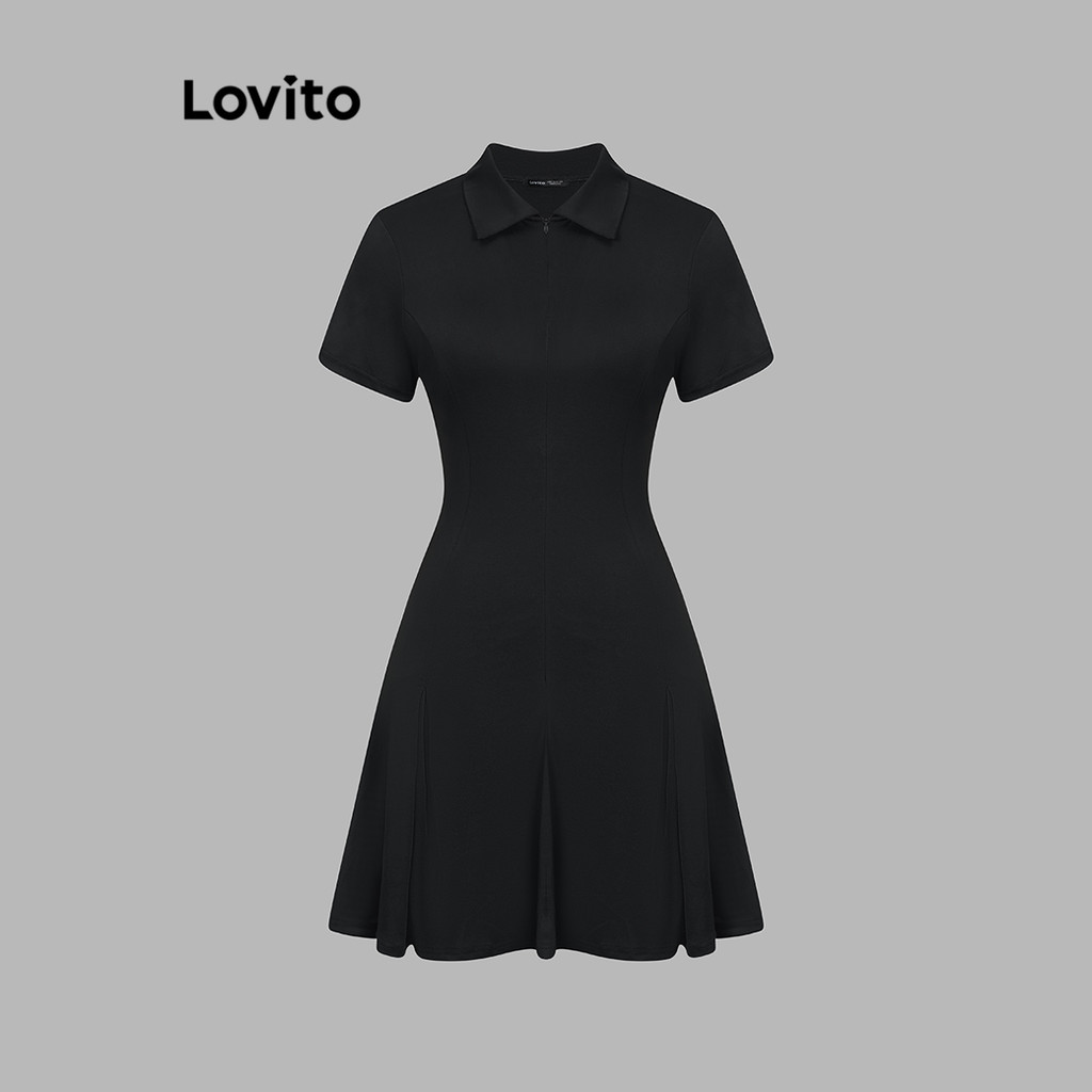 Lovito Vestido Feminino Casual Liso com Zíper para Mulheres L104ED411