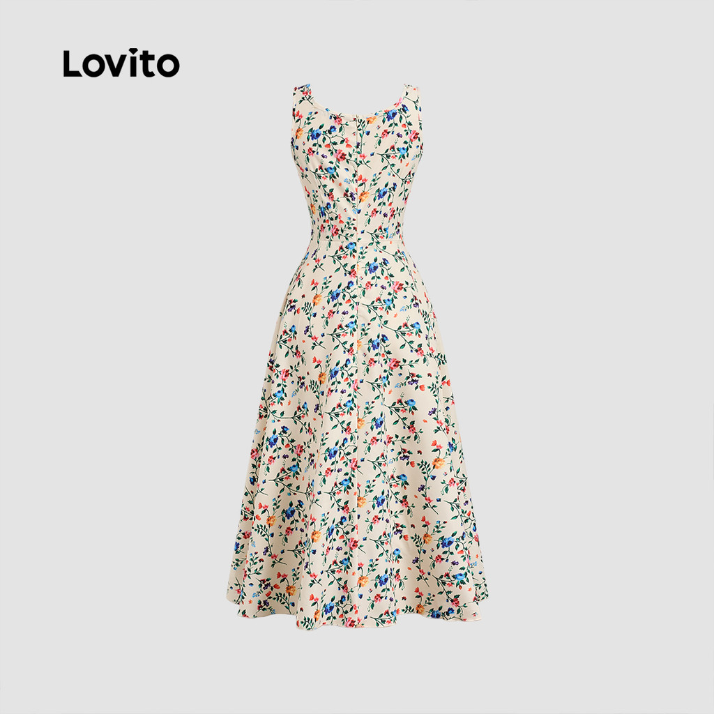 Lovito Vestido Casual Drapeado Vestido Primavera/Verão Para Mulheres L138AD1030