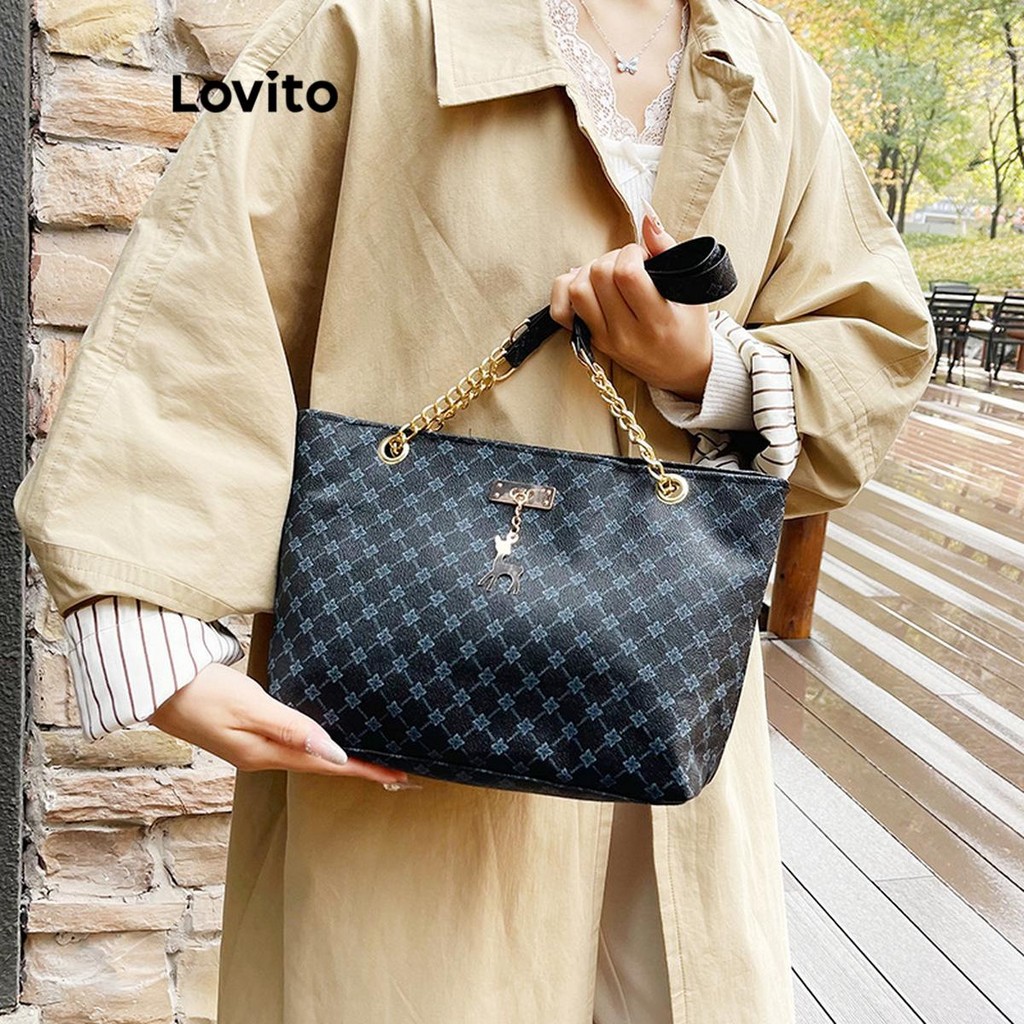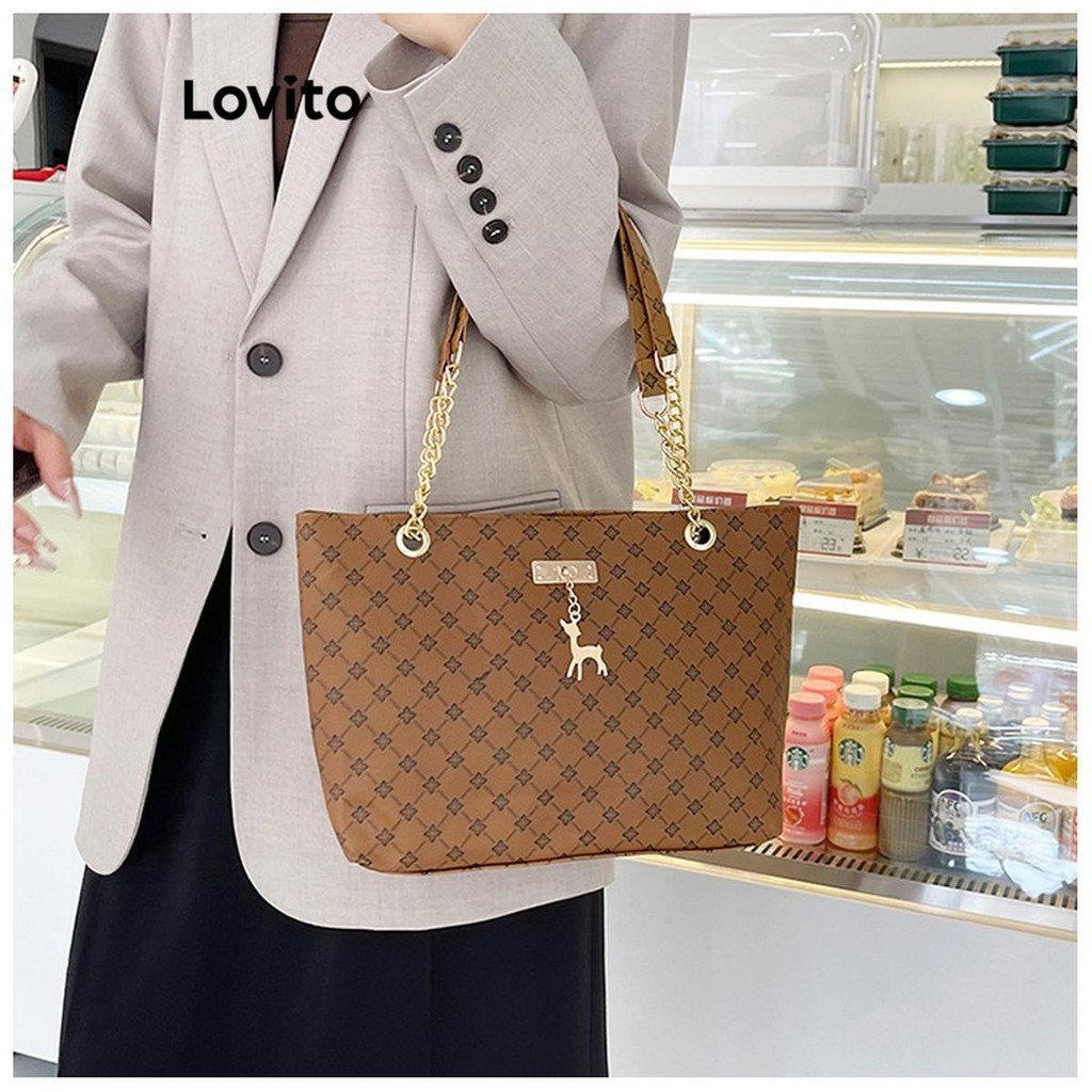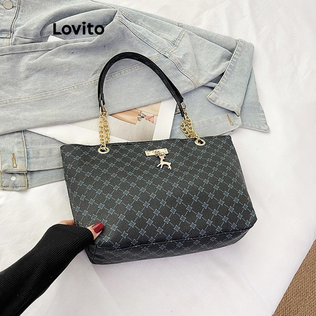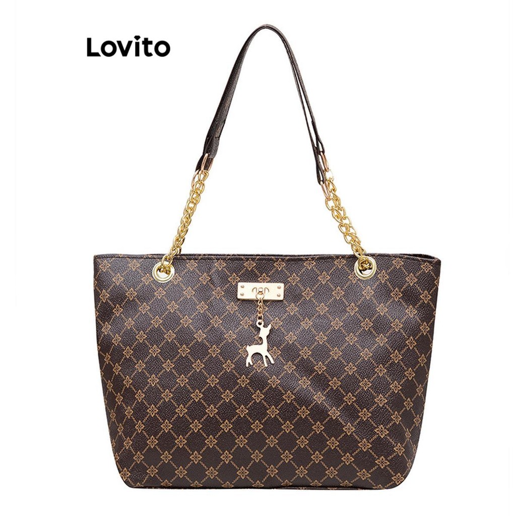 (Trendy) Lovito Elegante Alça Superior Sacola Simples Vintage Presbiopia Corrente Sacola Para Mulher LFA65002