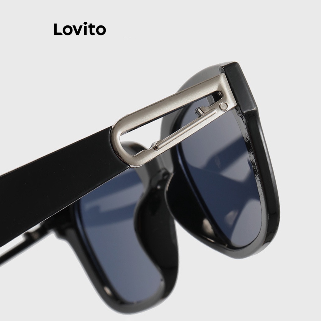 (Trendy) Lovito Óculos De Sol Casuais De Metal Liso Para Mulheres LFA08048 (Preto)